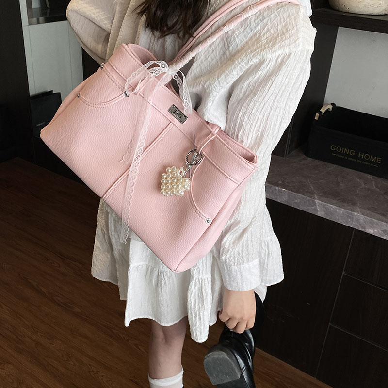 小众大容量包包女2025新款休闲通勤单肩包简约百搭粉色回忆托特包