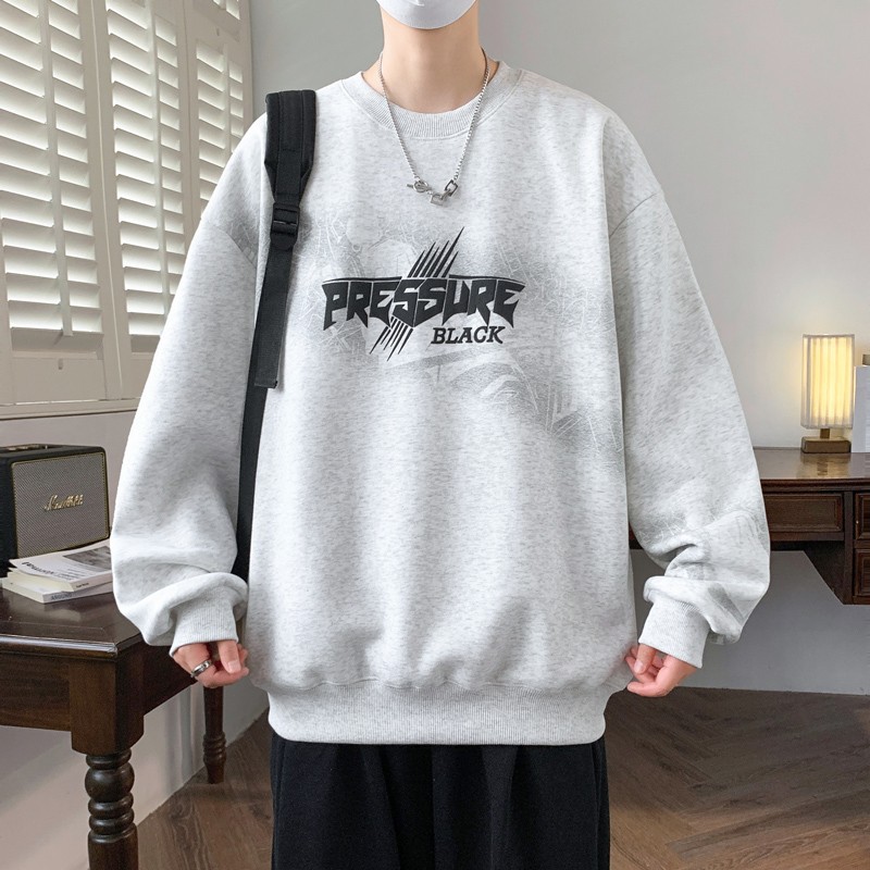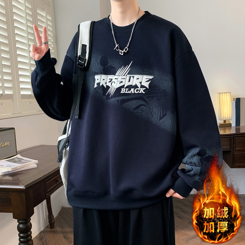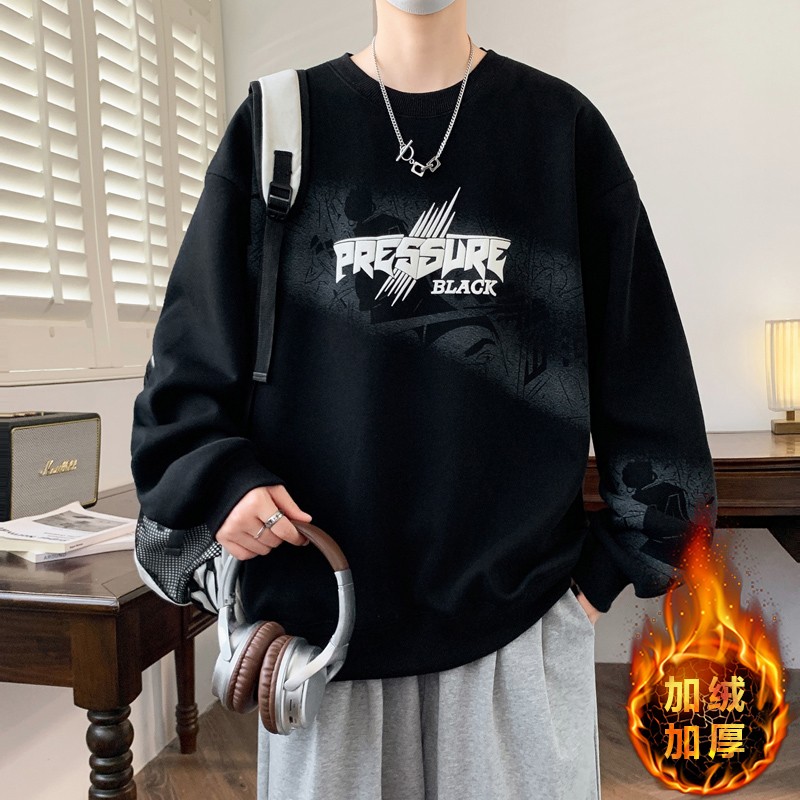 加绒重磅卫衣男款秋冬季2025新美式圆领内搭上衣保暖长袖体恤以純