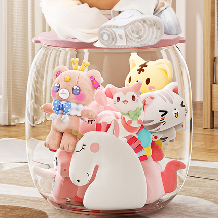 收纳桶娃娃神器装零食桶小玩偶毛绒玩具透明凳子儿童大收纳箱圆筒