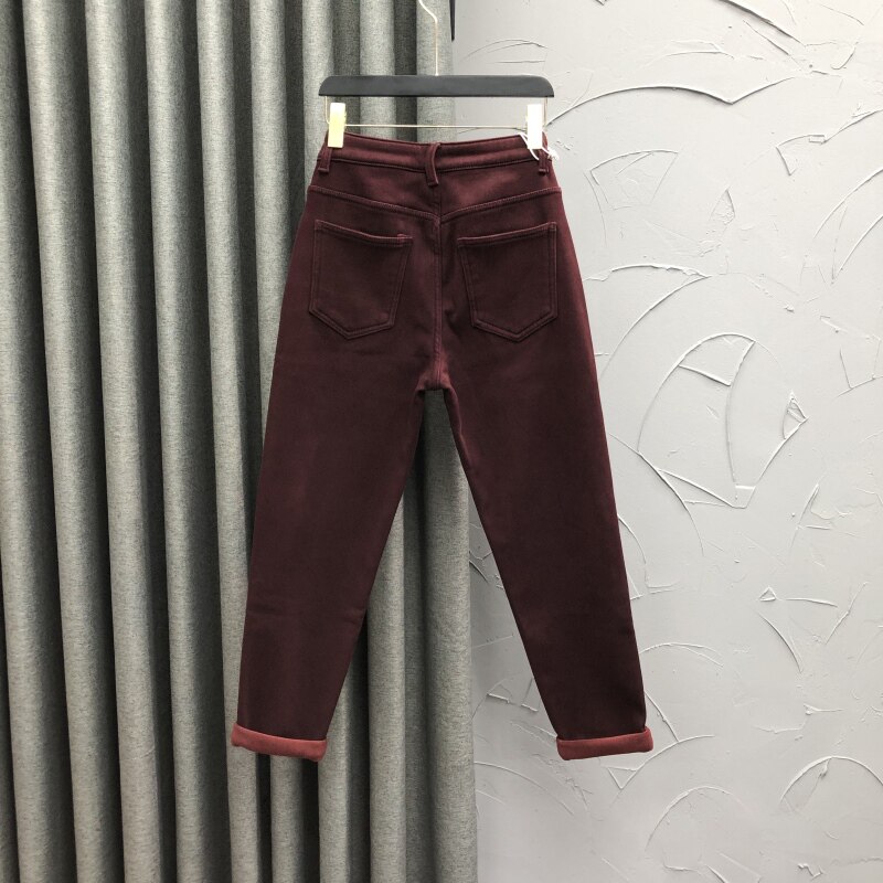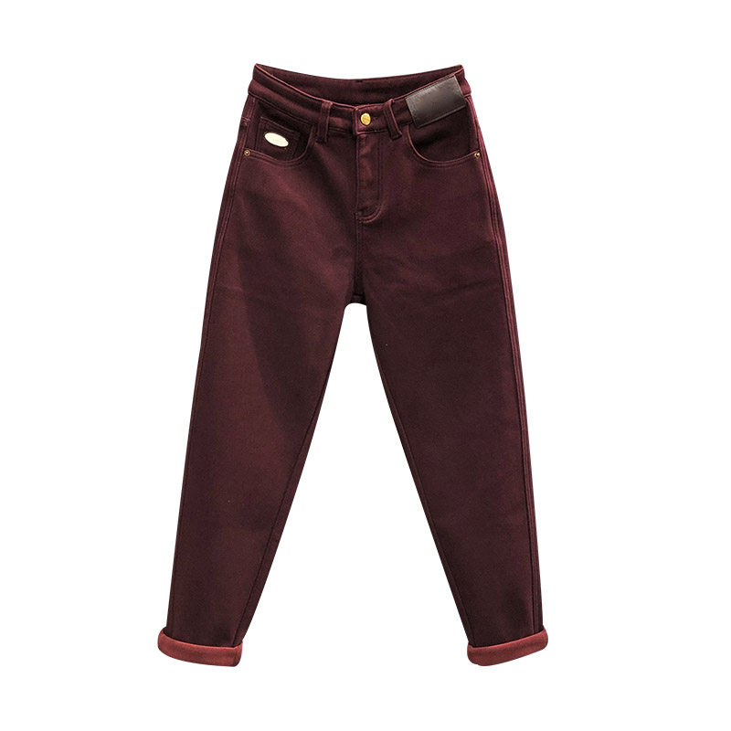 清仓价加绒小脚萝卜牛仔裤女2024冬季高腰宽松加厚保暖哈伦垮裤潮