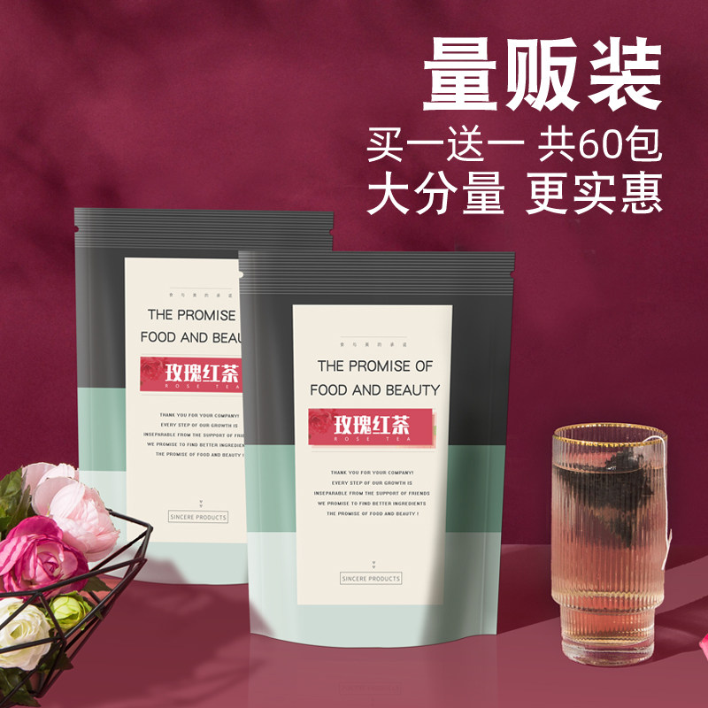 玫瑰红茶重瓣红玫瑰小袋装冷泡袋泡茶花茶组合茶叶小种红茶量贩装