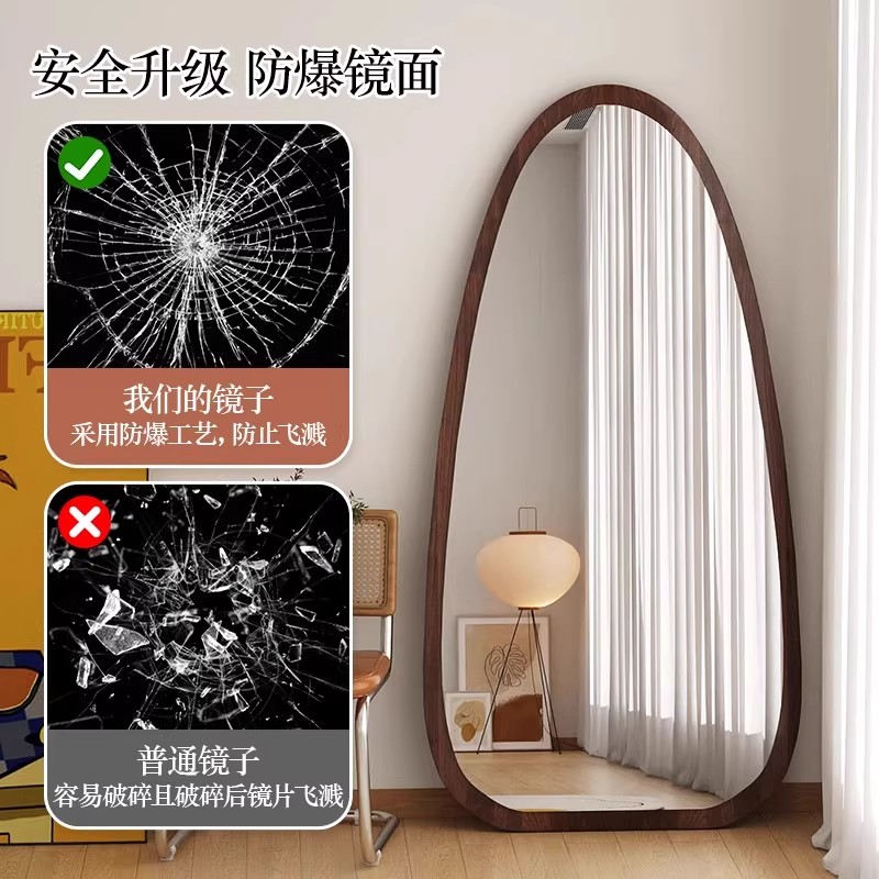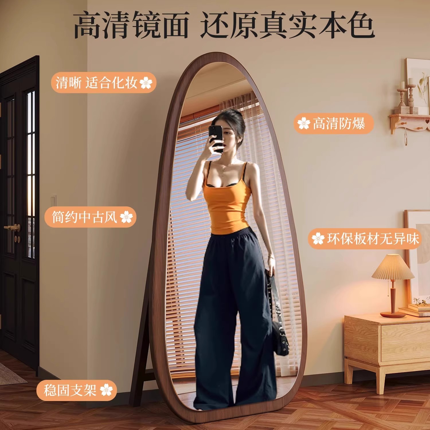 家用卧室复古异形壁挂式穿衣镜高级感大试衣镜子中古全身镜落地镜