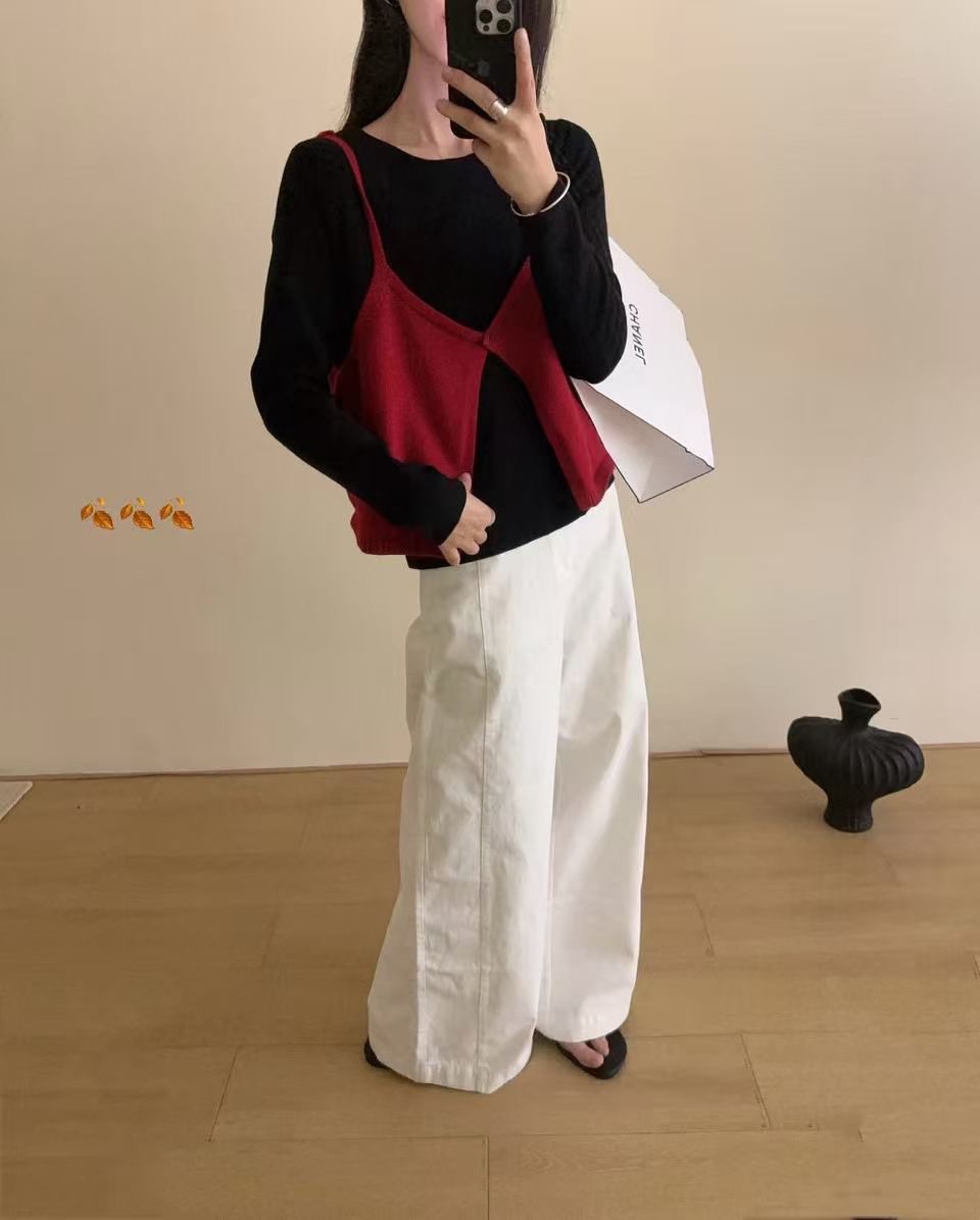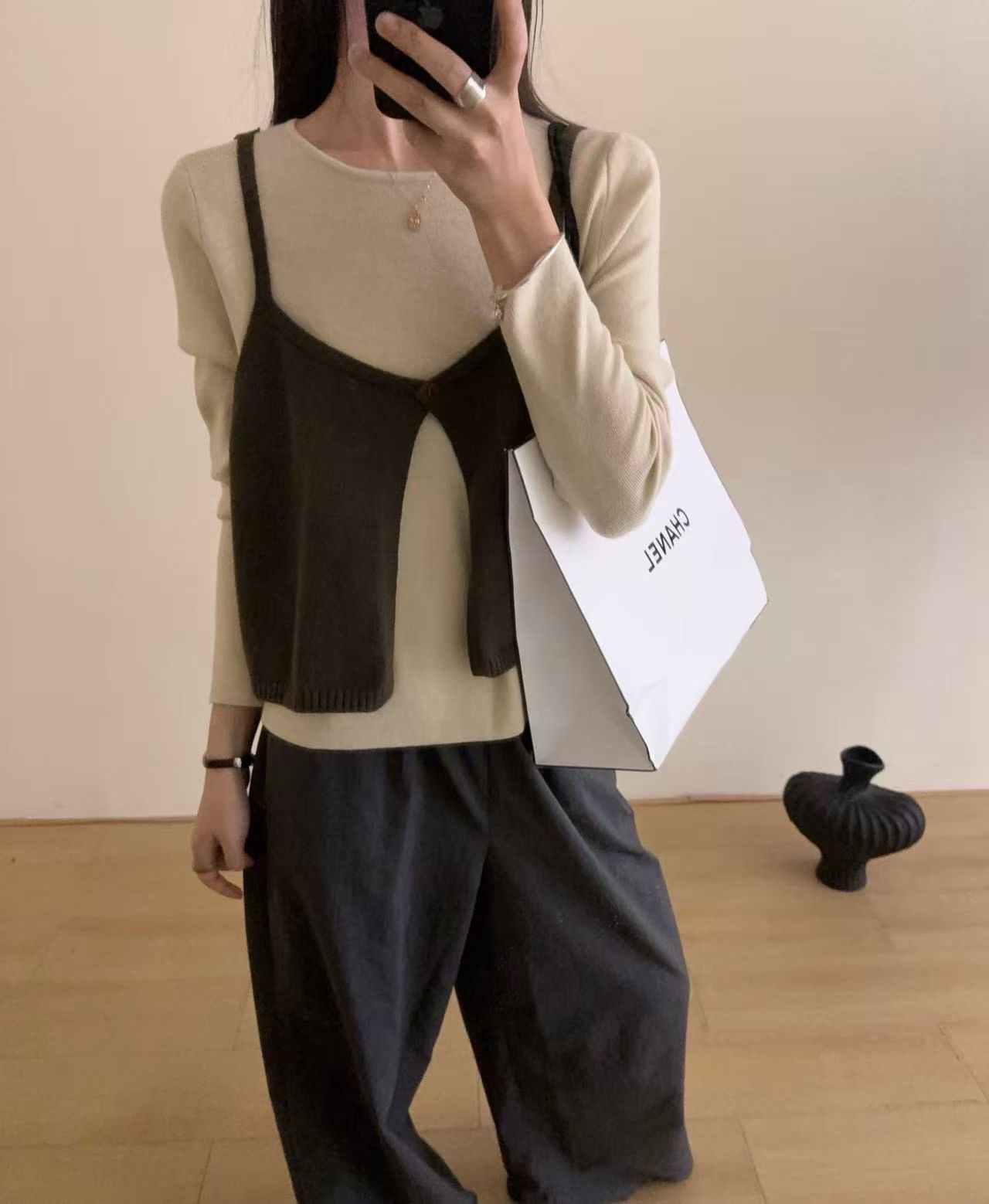 十三行设计感一粒扣吊带背心两件套针织衫女秋百搭两种穿搭套装