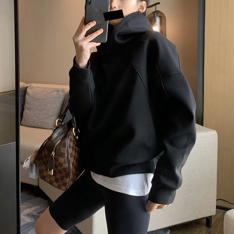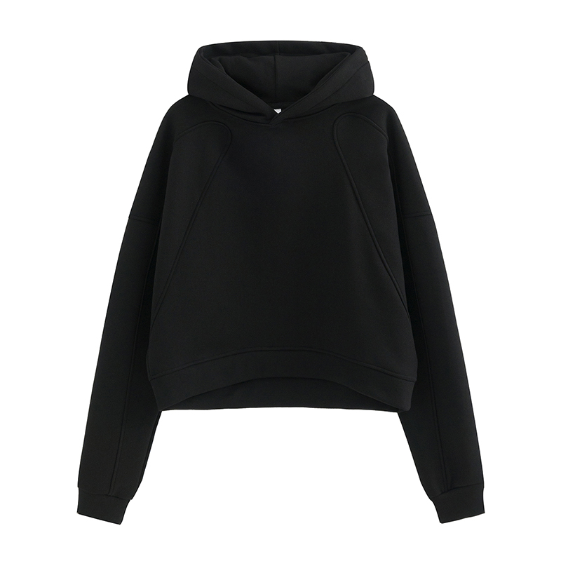 加绒小个子短款黑色连帽卫衣女