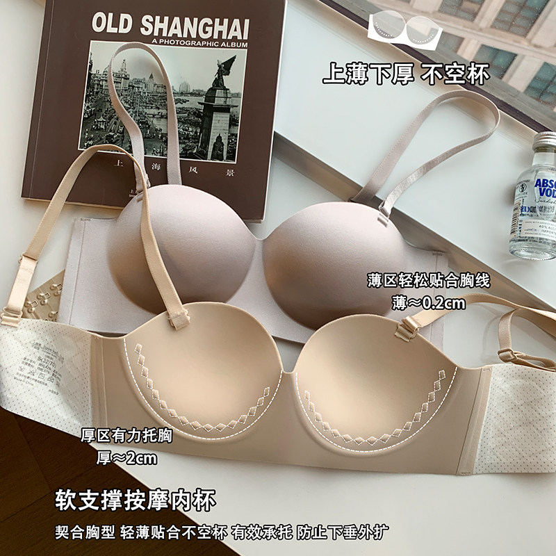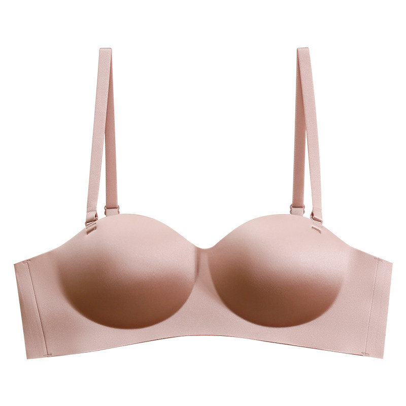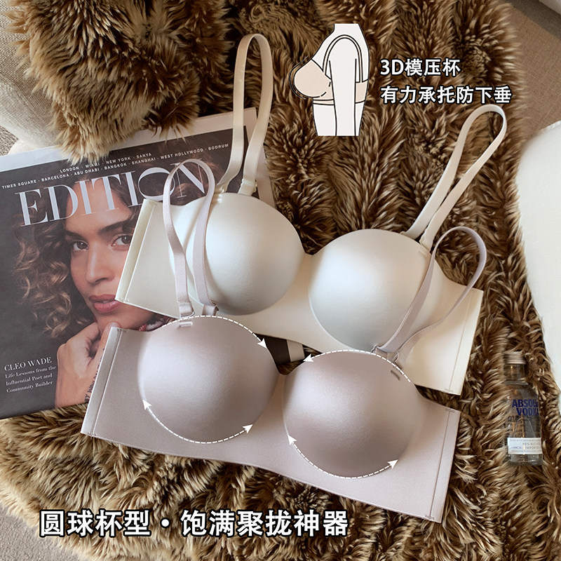 无痕光面内衣女防滑小胸聚拢显大无肩带抹胸上薄下厚无钢圈文胸罩