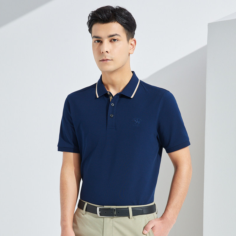 雅涛2025春夏男士高棉微弹商务休闲短袖T恤舒适马标细条纹领POLO