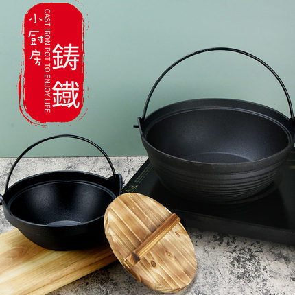加厚铸铁炖锅不粘寿喜烧锅老式吊锅汤煲锅日式单人小份酒精炉火锅