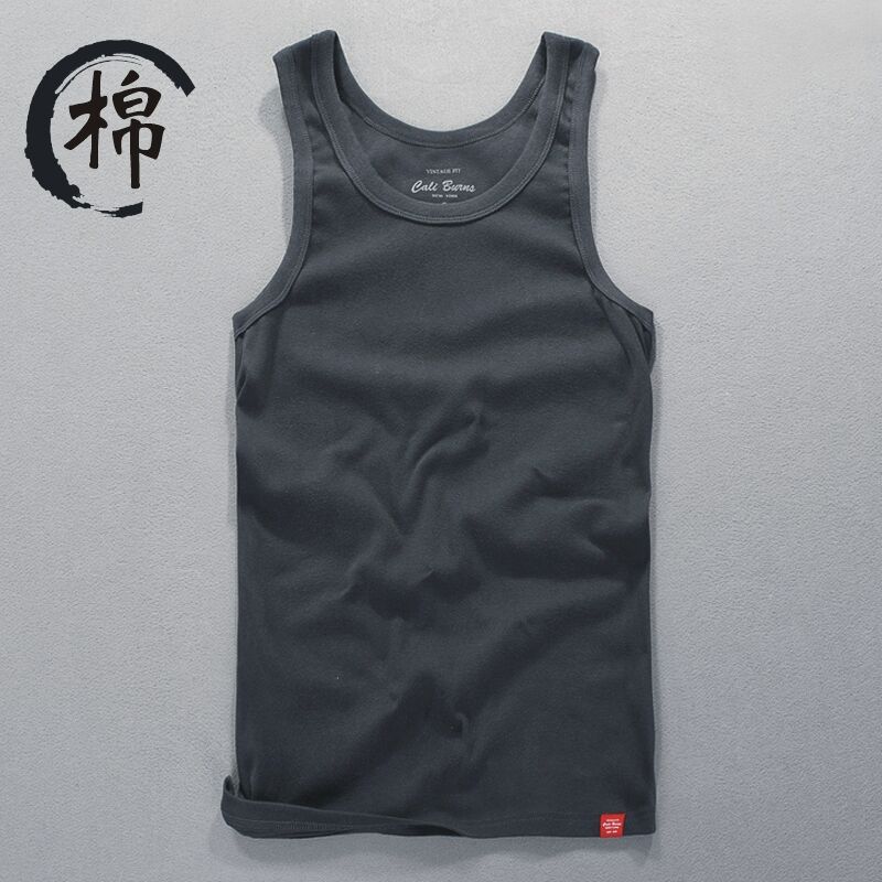 简约休闲纯棉背心男士无袖纯色修身运动汗背心四季可穿潮男打底衫