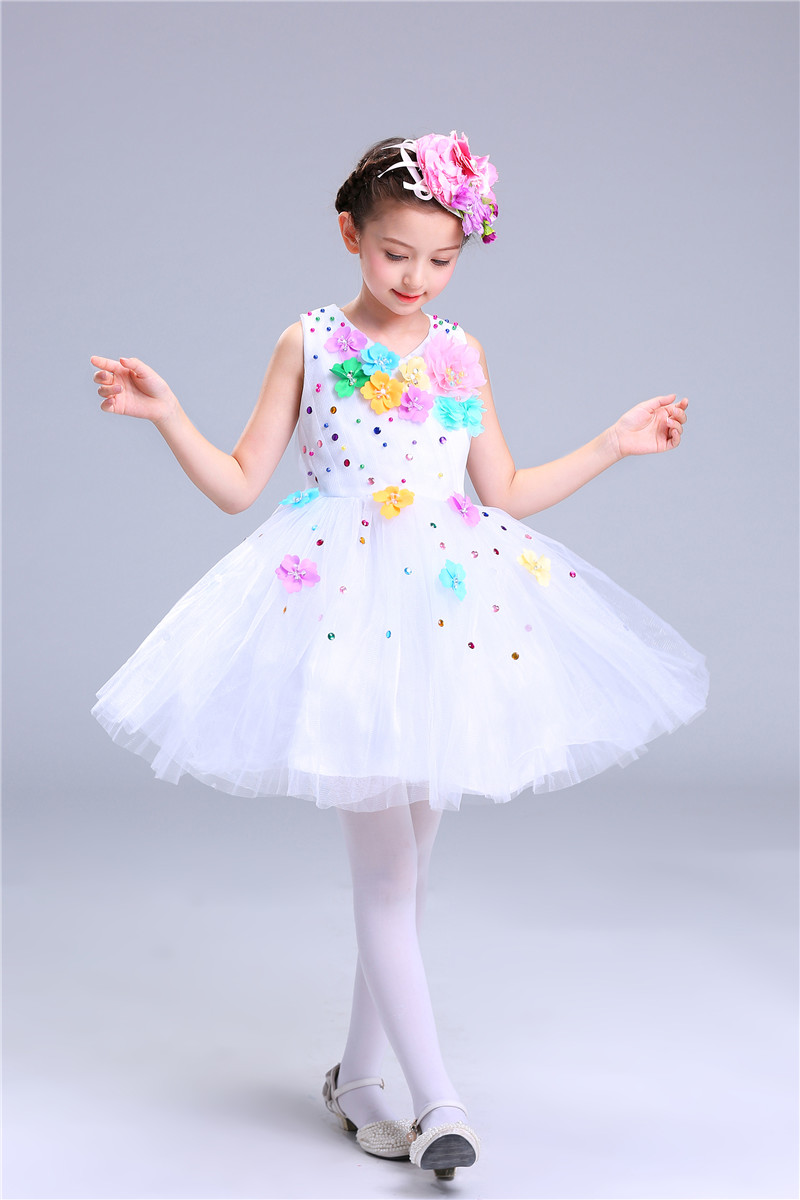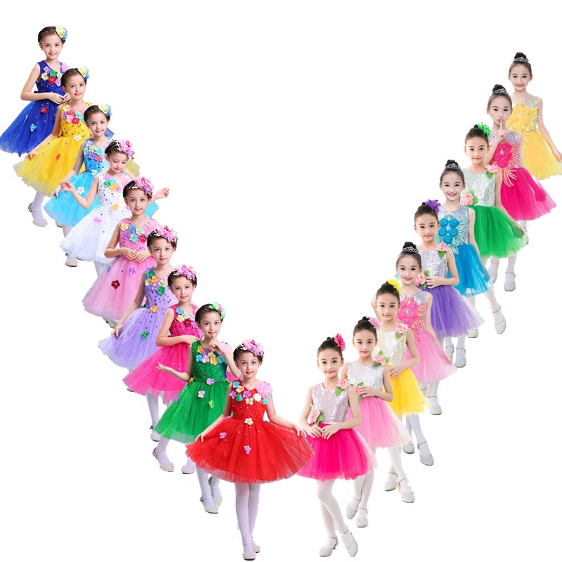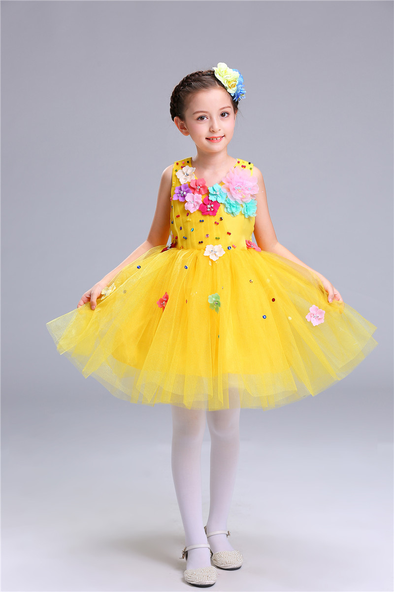 六一儿童新款幼儿跳舞演出服女童公主蓬蓬裙小学生黄绿色合唱团服