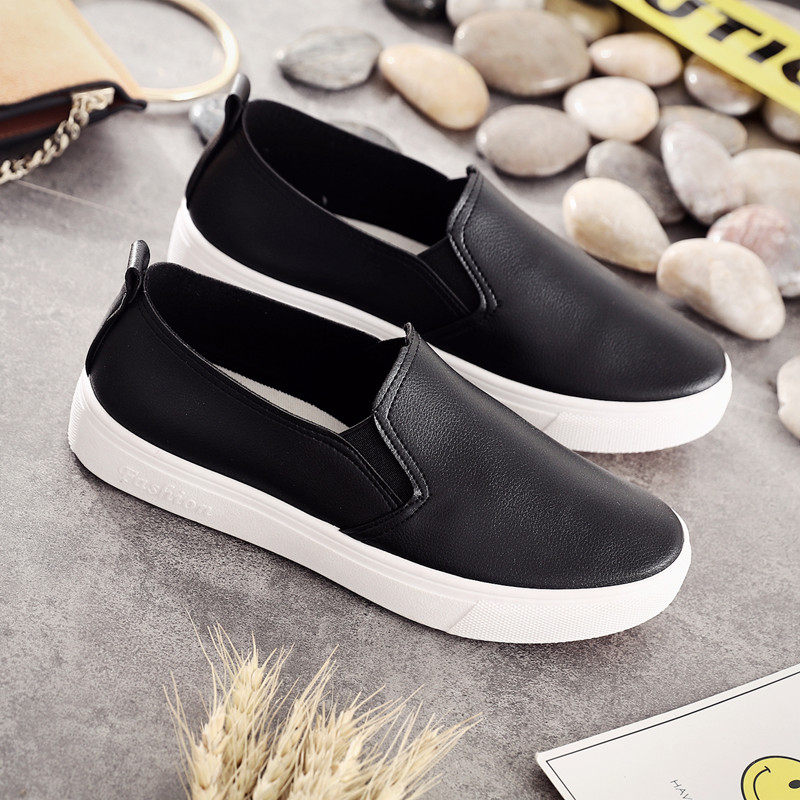 春秋女士皮面厚底PU鞋女韩版一脚蹬懒人厚底鞋休闲小白鞋学生板鞋