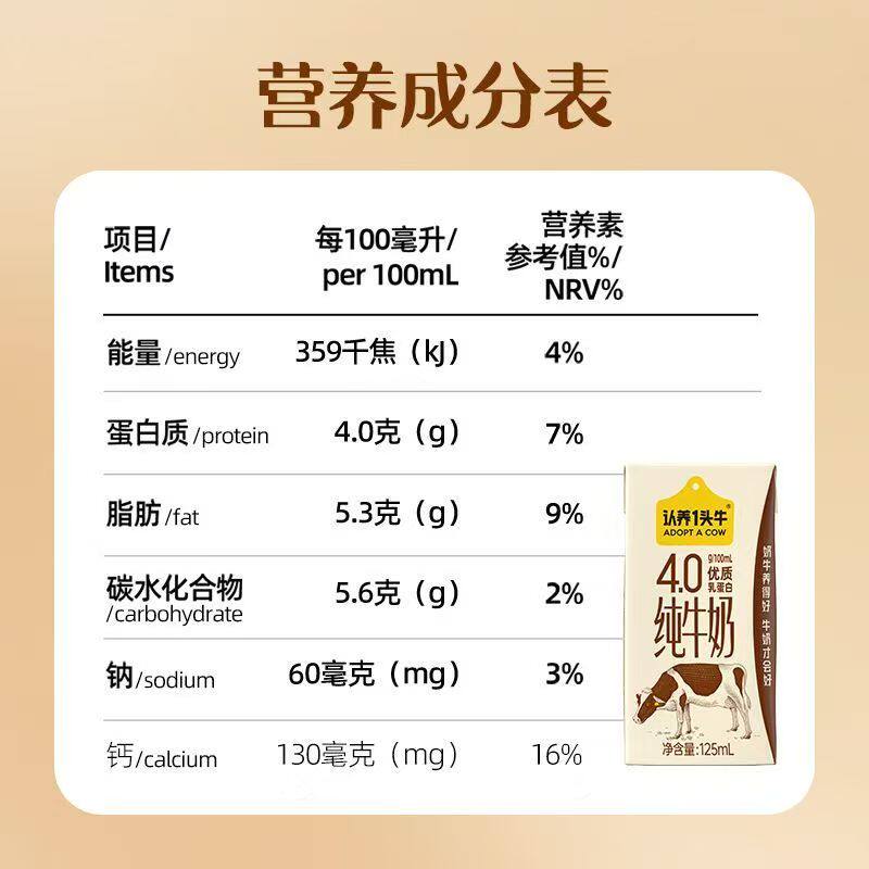 认养一头牛4.0g纯牛奶125ml*10盒儿童高钙牛奶11月产原生蛋白质