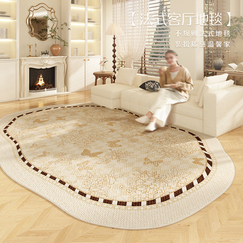 法式浪漫不规则客厅地毯2025新款奶油风免洗可擦沙发茶几地垫家用