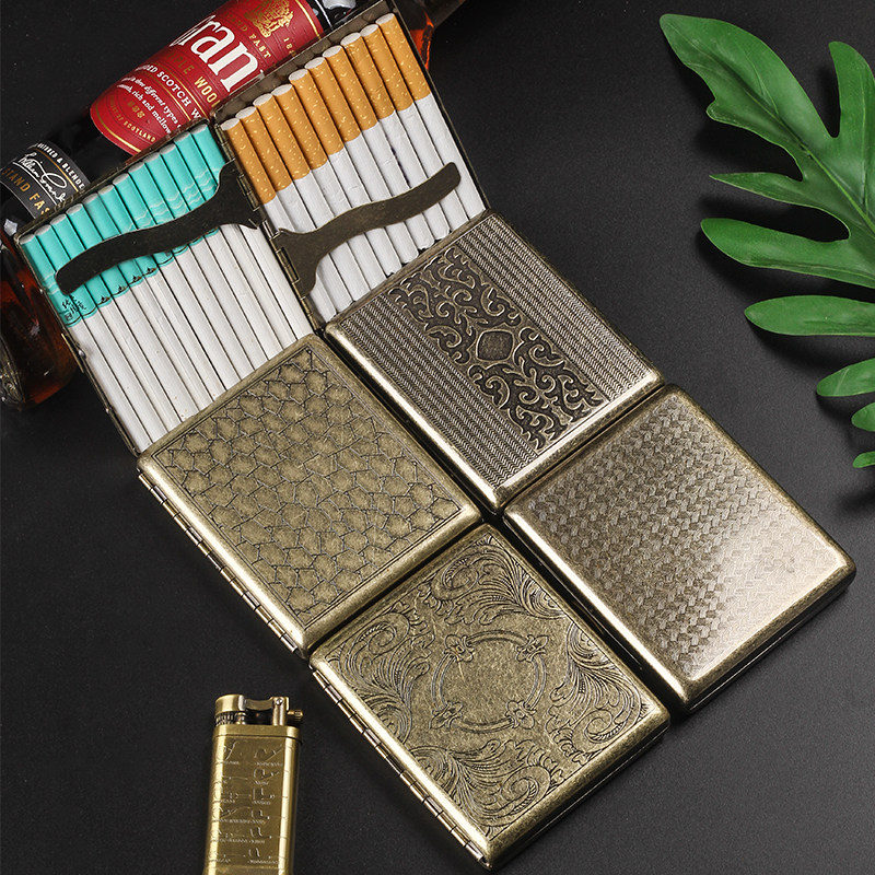 复古青铜烟盒20支装便携金男烟盒个性创意 防潮防压金属铁香菸盒