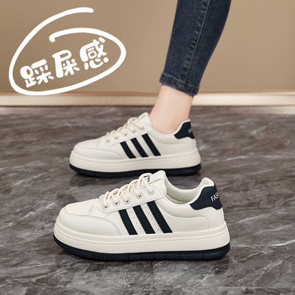 真皮女鞋踩屎感孕妇小白板鞋2025爆款小码34不累脚老爹运动莆田鞋
