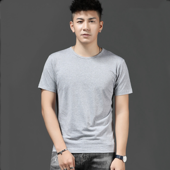 清仓莫代尔冰丝短袖T恤男装夏季纯色白圆领潮流打底衫上衣服半袖