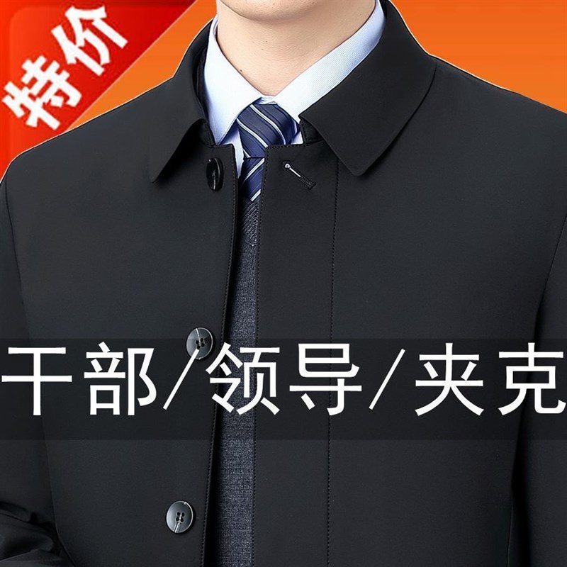 春秋外套薄款夹克男士高档中老年爸爸装短款宽松版翻领茄克衫新款