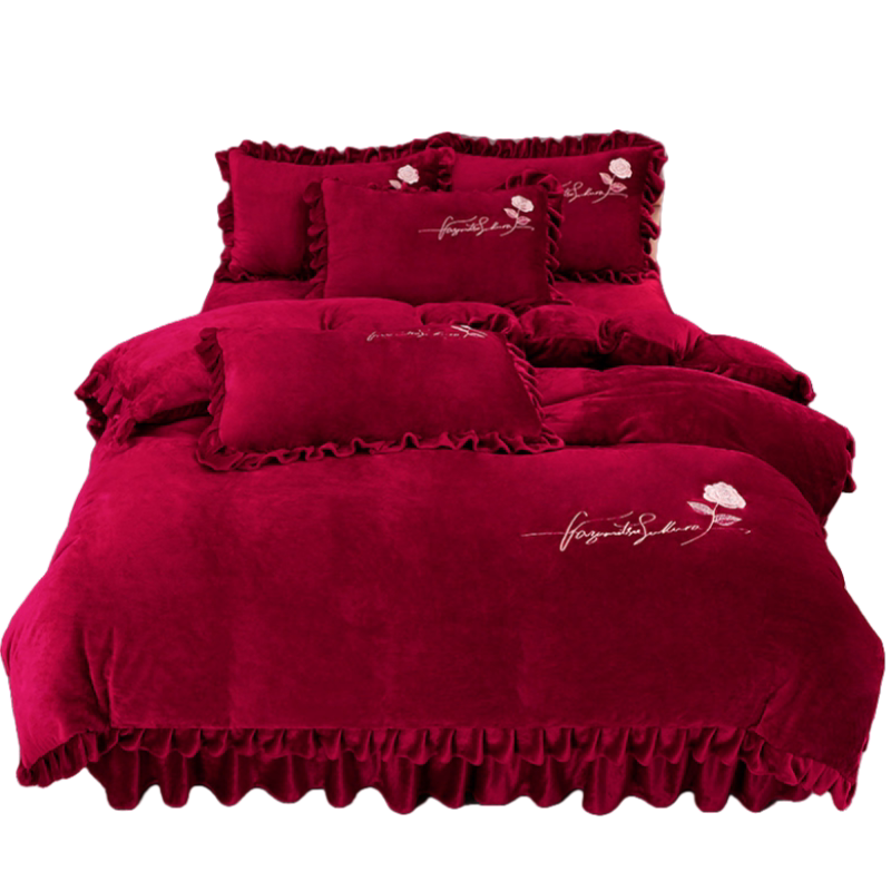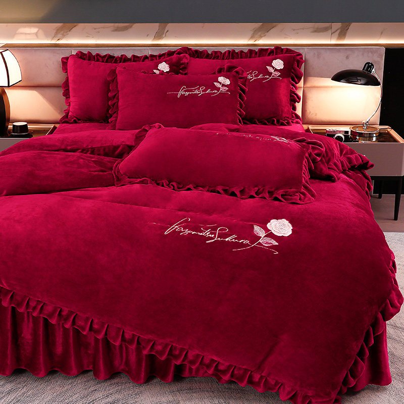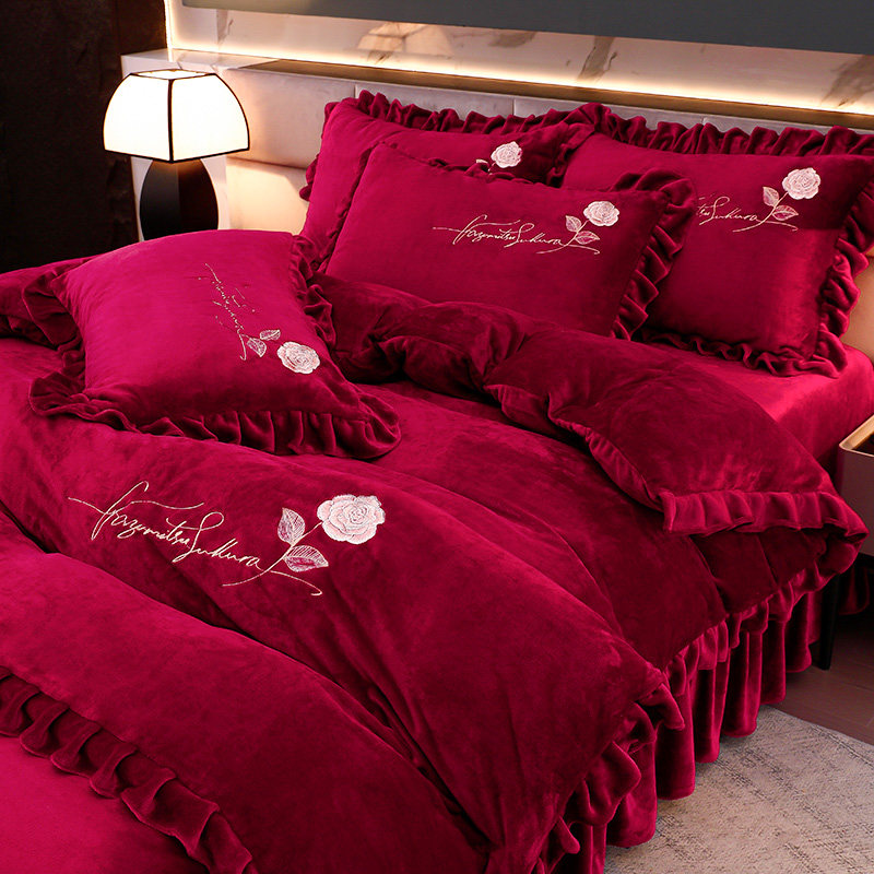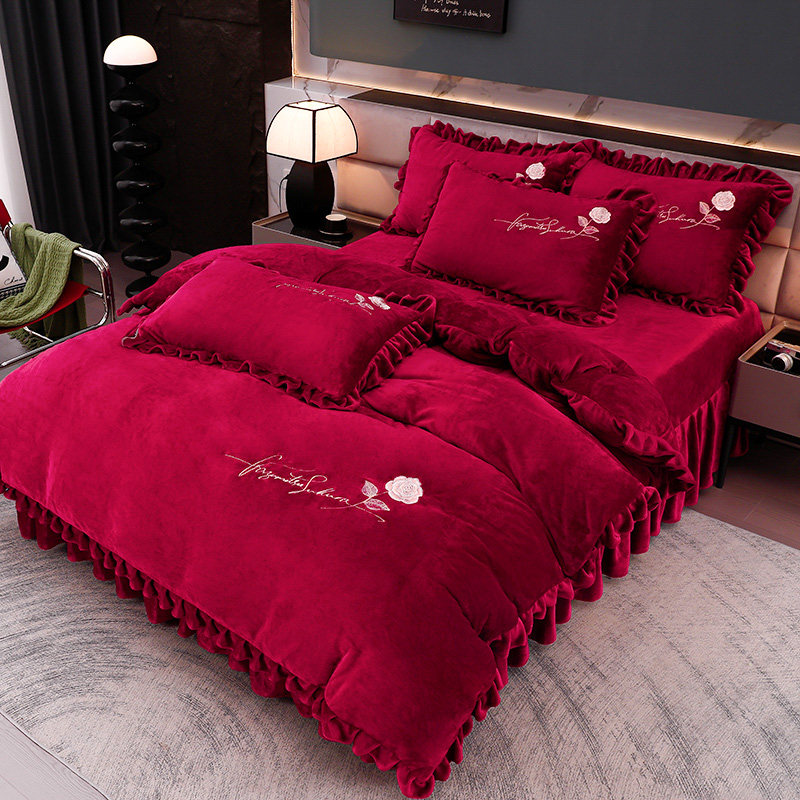 高端加厚牛奶绒四件套冬季法兰绒珊瑚绒被套床裙南通家纺床上用品