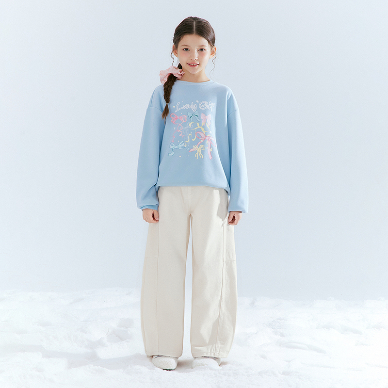 笛莎官方旗舰童装女童弯刀牛仔裤秋季新款大童女孩儿童宽松阔腿裤