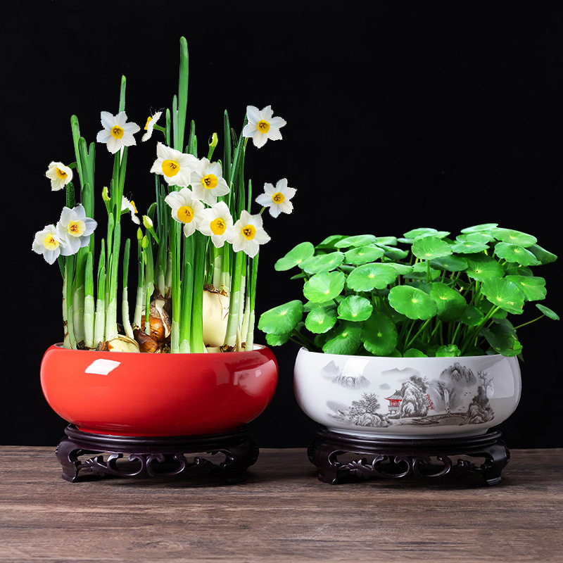水仙花盆陶瓷铜钱水培睡莲一叶莲碗莲金钱水养盆缸无熊