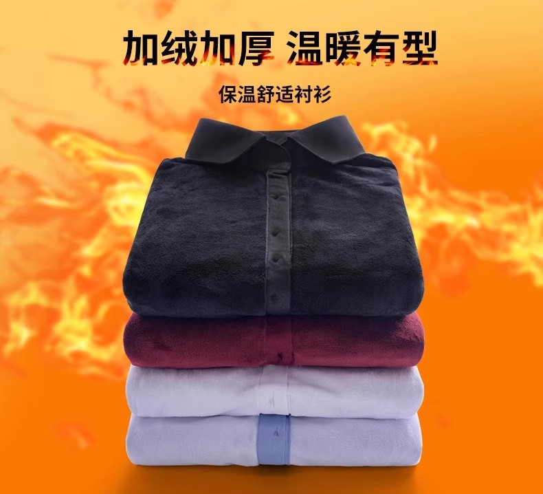 纯棉加绒白衬衫女长袖显瘦打底加厚职业装秋冬百搭上班保暖衬衣潮