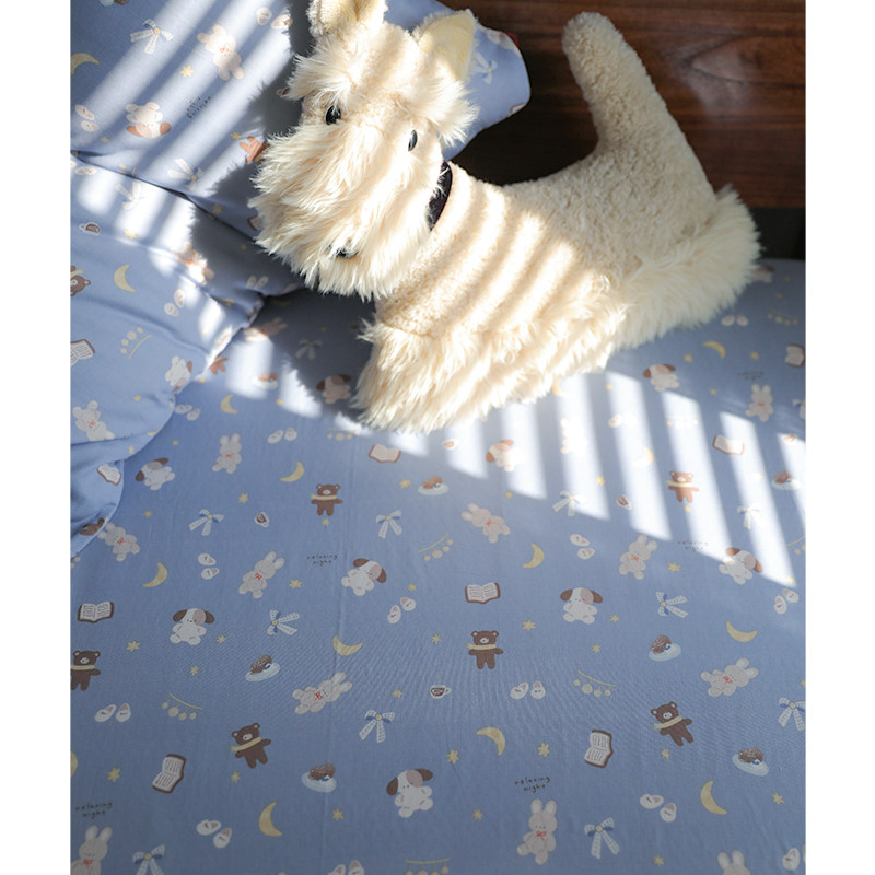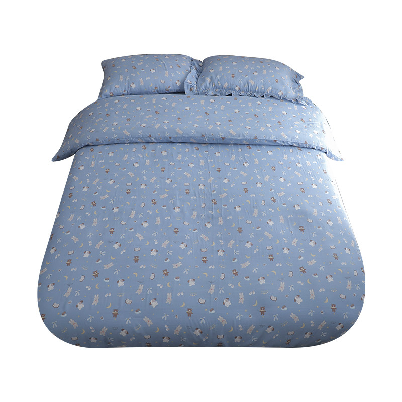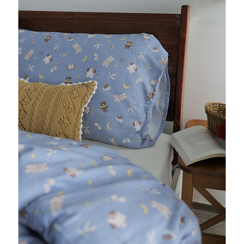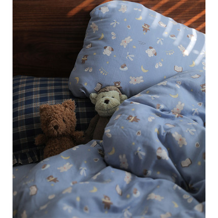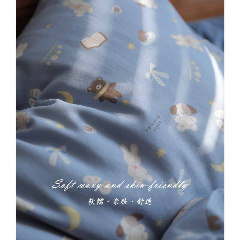 熊仔星球丨蓝色系纯棉双层纱可爱卡通熊床单信封枕套被套床笠1.2m