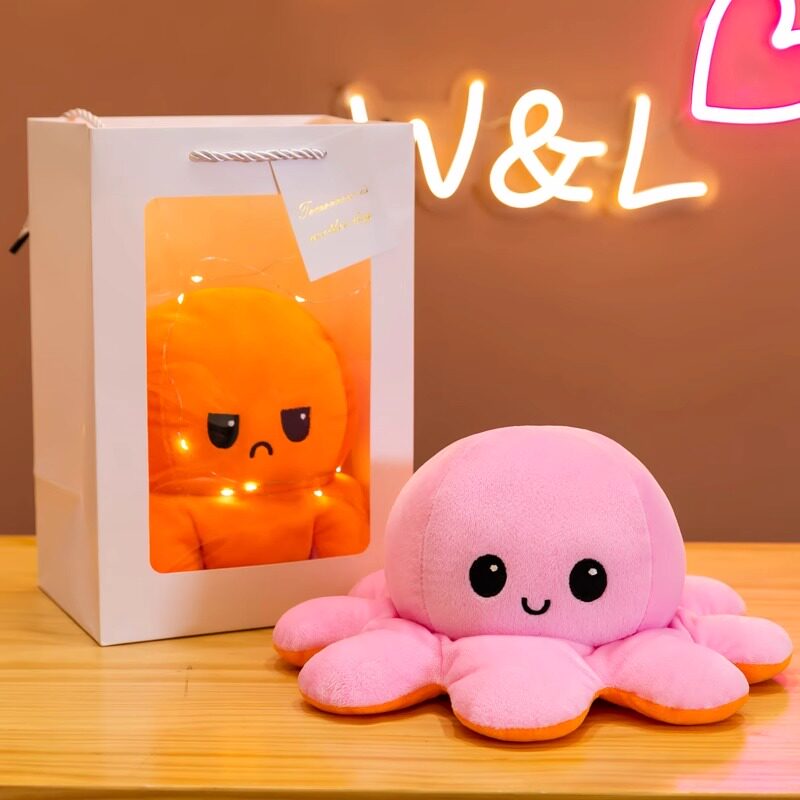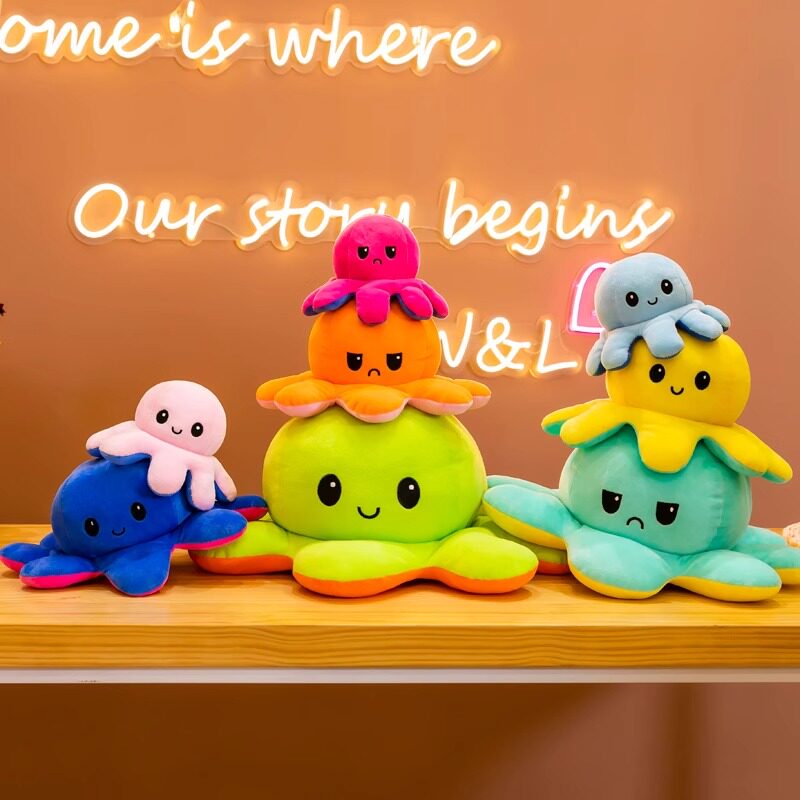 日本代购翻转小章鱼娃娃翻面章鱼双面变脸生气开心章鱼毛绒玩偶