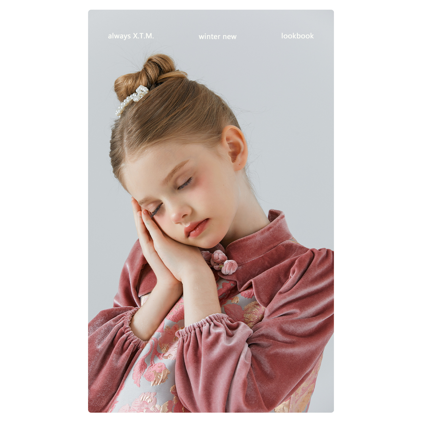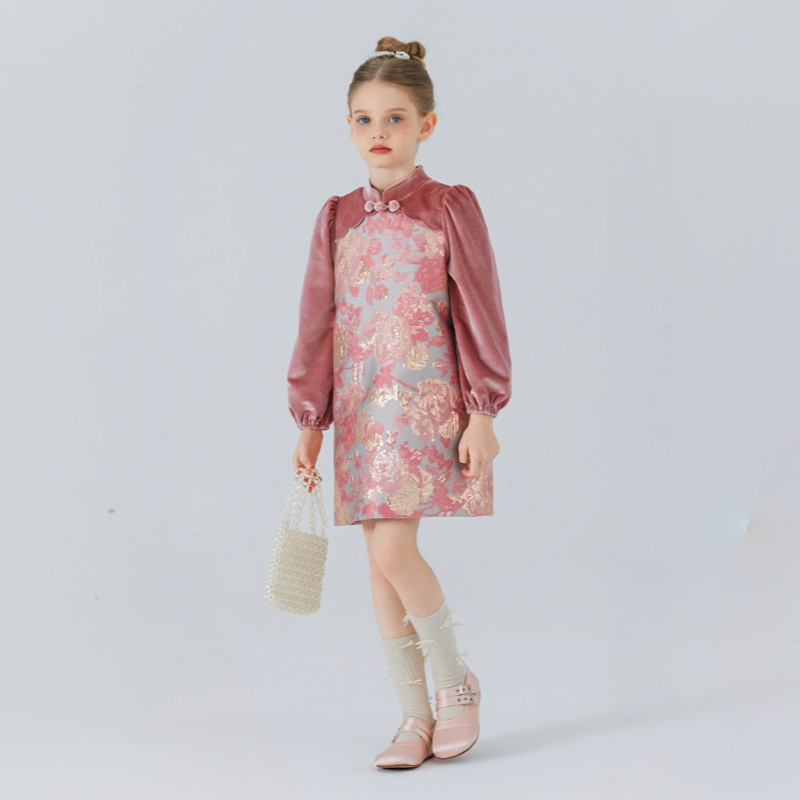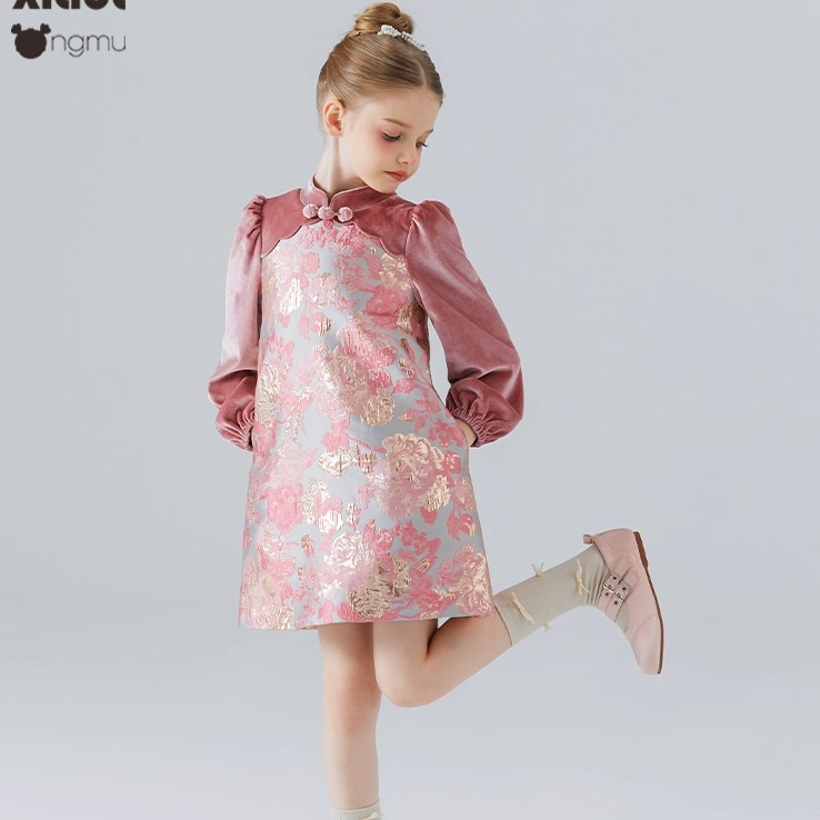 国风加绒公主裙女童连衣裙秋冬新款新中式提花旗袍裙儿童加厚裙子