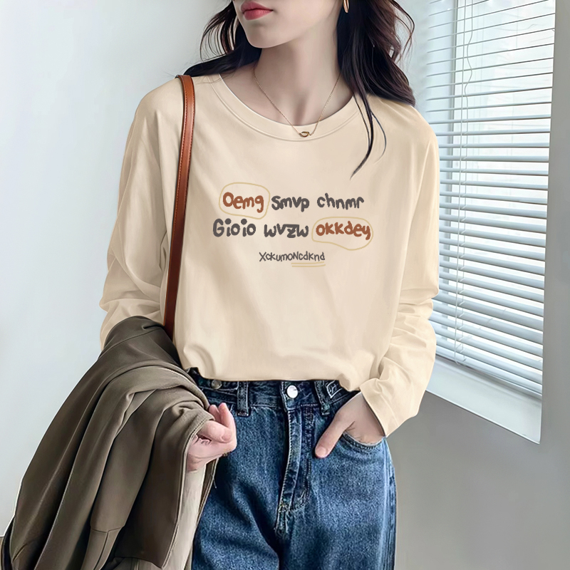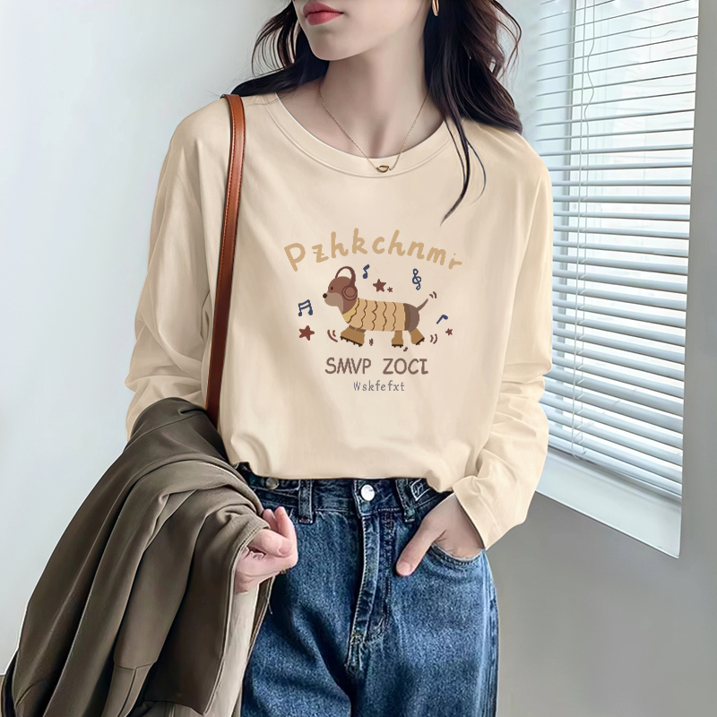 早秋纯棉宽松白色长袖t恤女