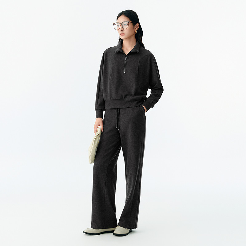 NAERSI娜尔思松弛感拉链休闲上衣翻领修饰身形长裤26春季新款套装