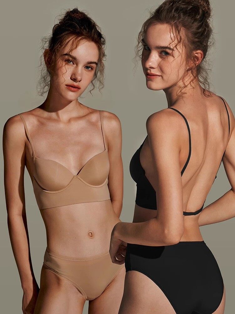 大露背深u型文胸美背内衣v领女大胸显小可外穿无痕吊带细肩带黑色