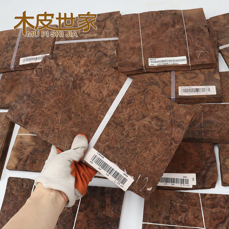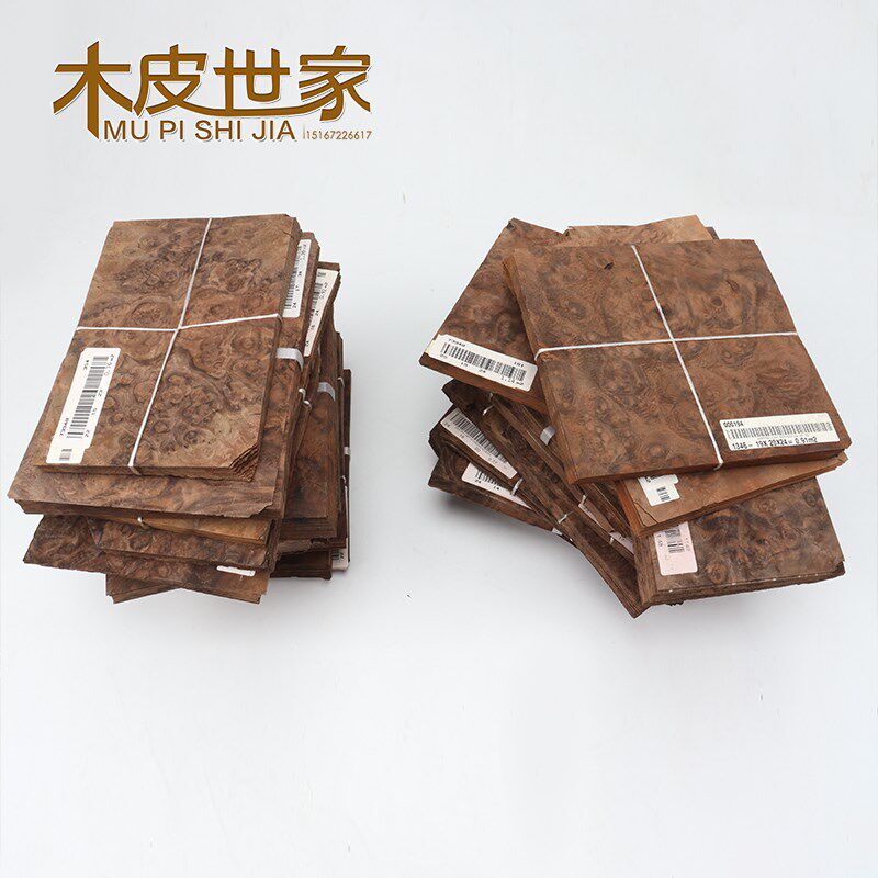 0.5mm纯实木 手工贴皮 装修翻新 黑胡桃树瘤+山香果树榴天然木皮