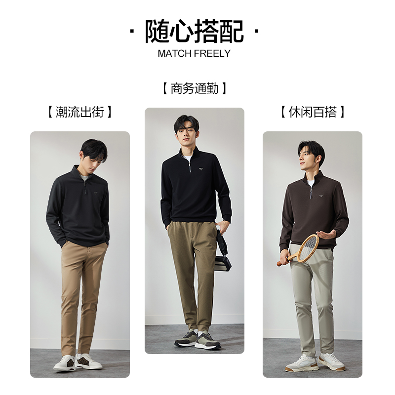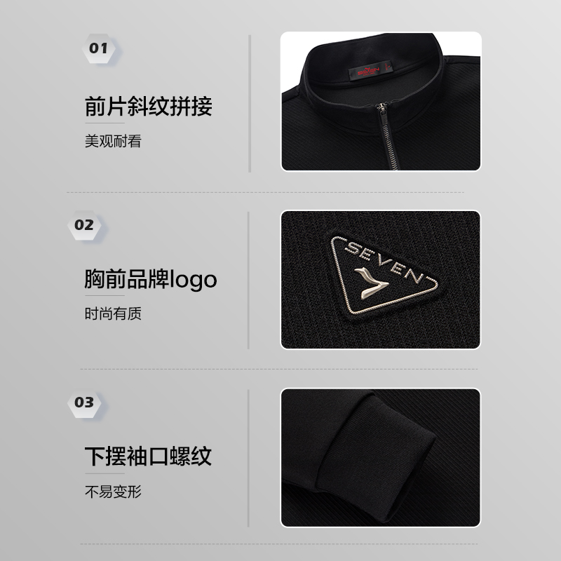 【含莫代尔】柒牌半拉链卫衣男舒适立领休闲套头上衣长袖T恤