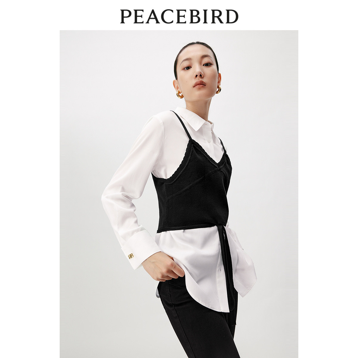 【商场同款】太平鸟女装2025年秋季新款系带两件套衬衫A1CAD4342