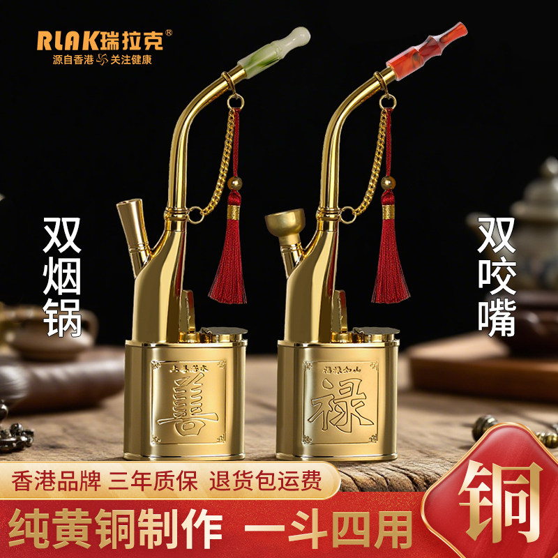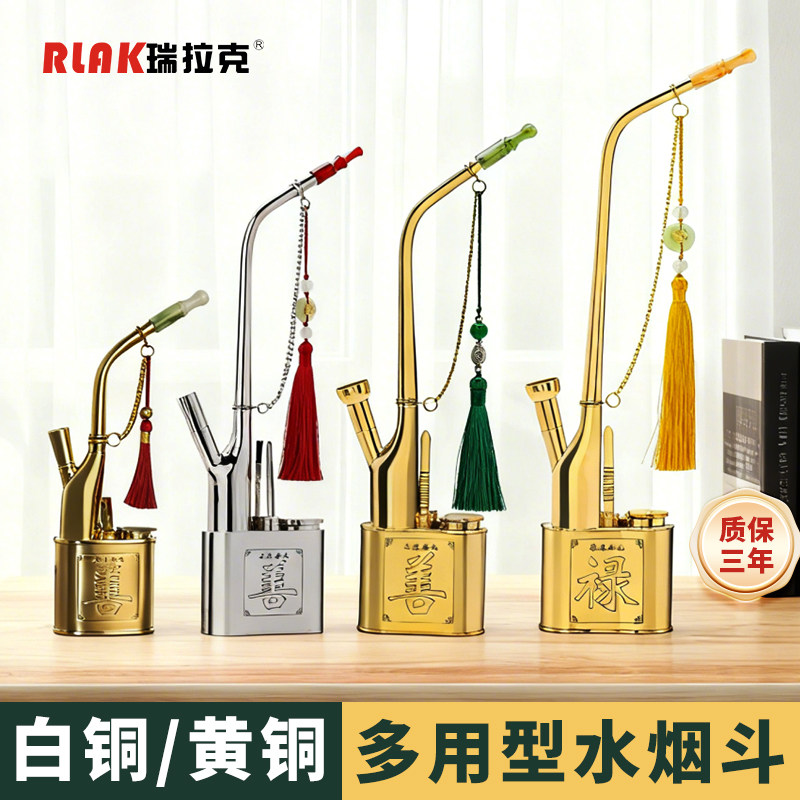 香港瑞拉克复古黄铜水烟斗老式便携式水烟壶水烟筒水烟袋两用全套