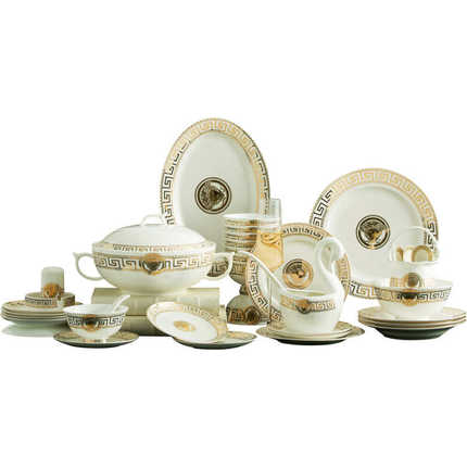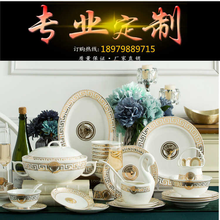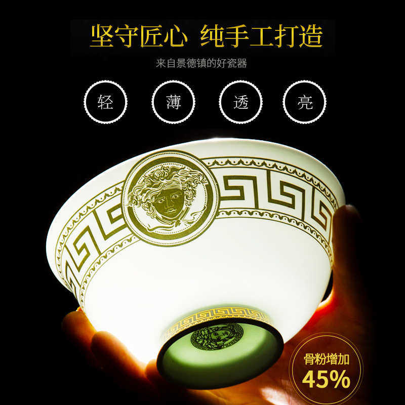 碗家用金边套装骨瓷套装陶瓷器盘碟碗盘批发零售老人头餐具景德镇