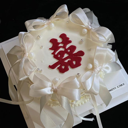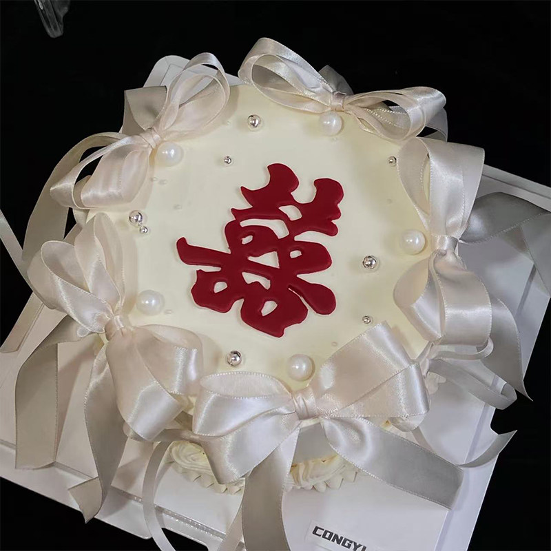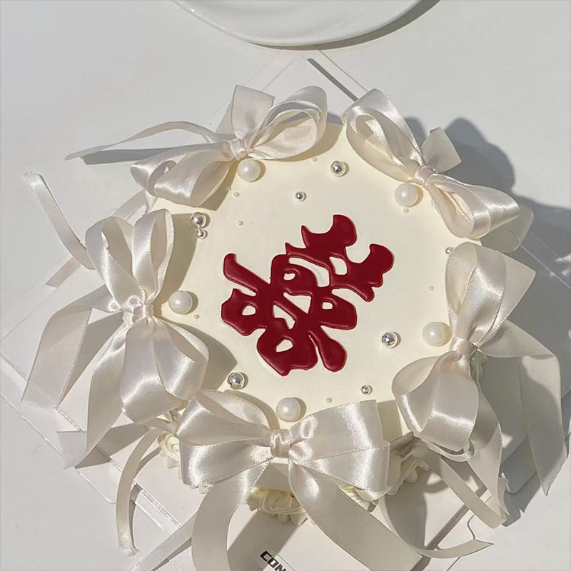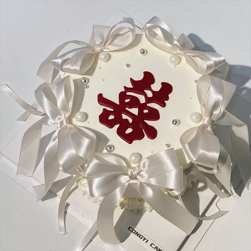 小红书同款结婚订婚红双喜字翻糖压模蛋糕装饰蝴蝶结丝带装饰插件