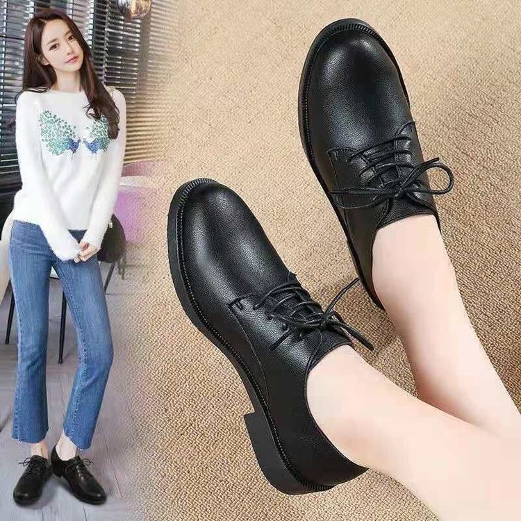 断码特价真皮工作单鞋女2025春季新款英伦风系带百搭平底休闲皮鞋