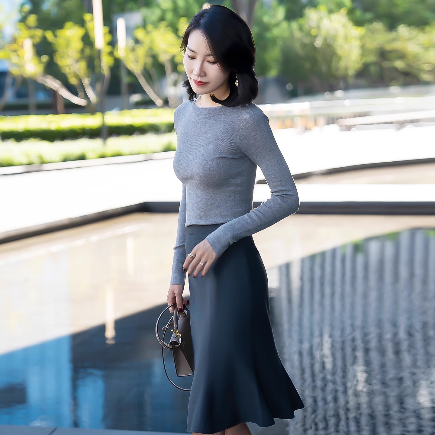 LadyJ-“意式高奢”D*or同源色织双层弹力羊毛秋冬优雅鱼尾半身裙