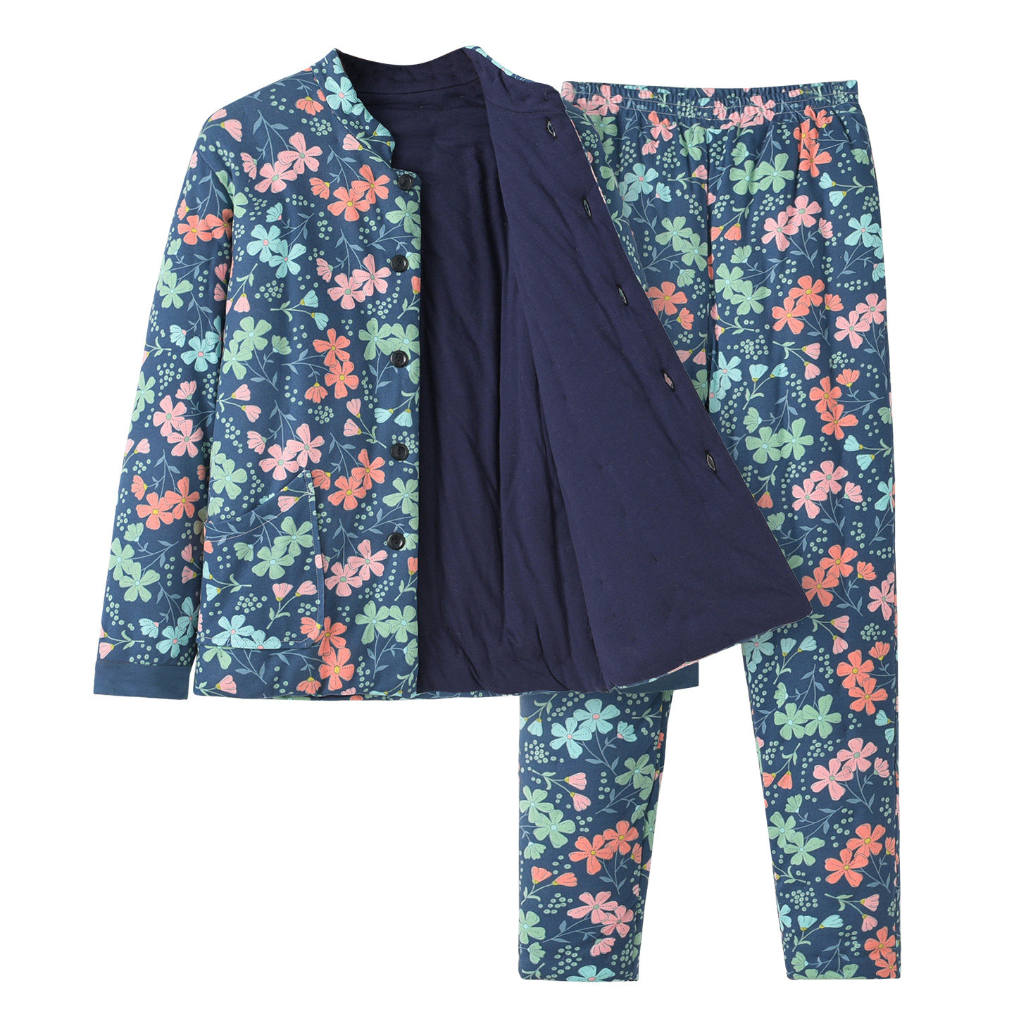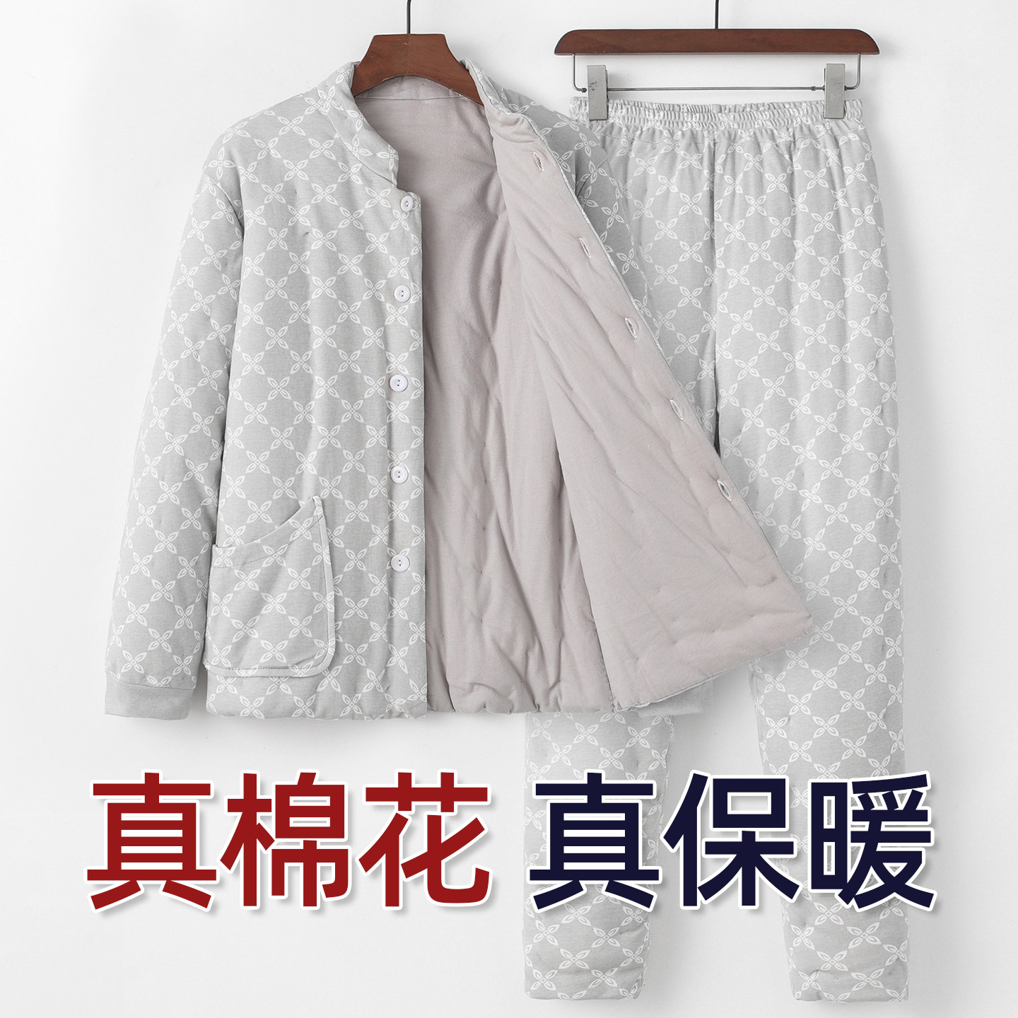 手工棉花棉袄棉裤套装加厚女棉服