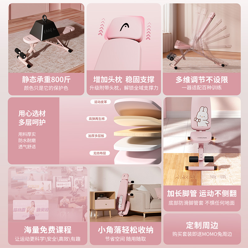 HEAD海德MOMO摸摸兔联名哑铃凳仰卧起坐板腹肌健身椅多功能卧推凳