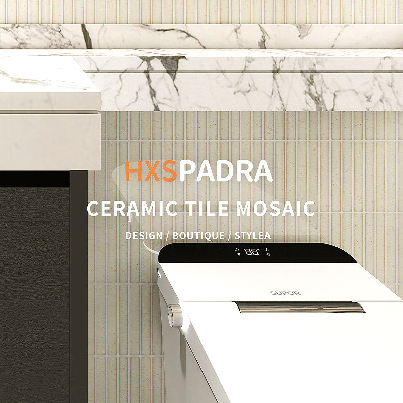 HXSPADRA奶油风窑变月牙长条马赛克陶瓷奶白黄色背景墙浴室瓷砖