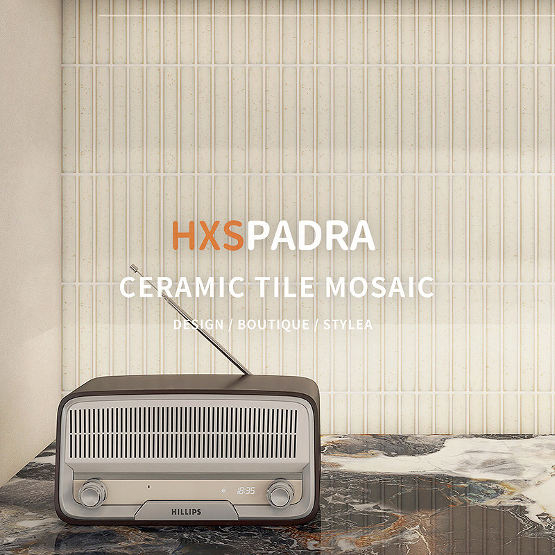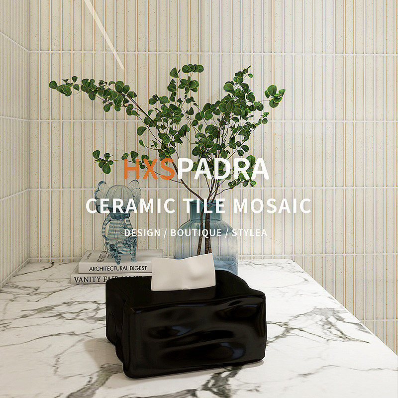 奶油风窑变月牙长条马赛克