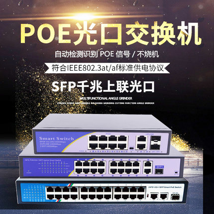 锐闪 4口/8口/16口/24口千兆POE交换机 1个SFP光口 2个SFP光口 1光4电 1光8电 2光8电48V百兆POE供电交换机