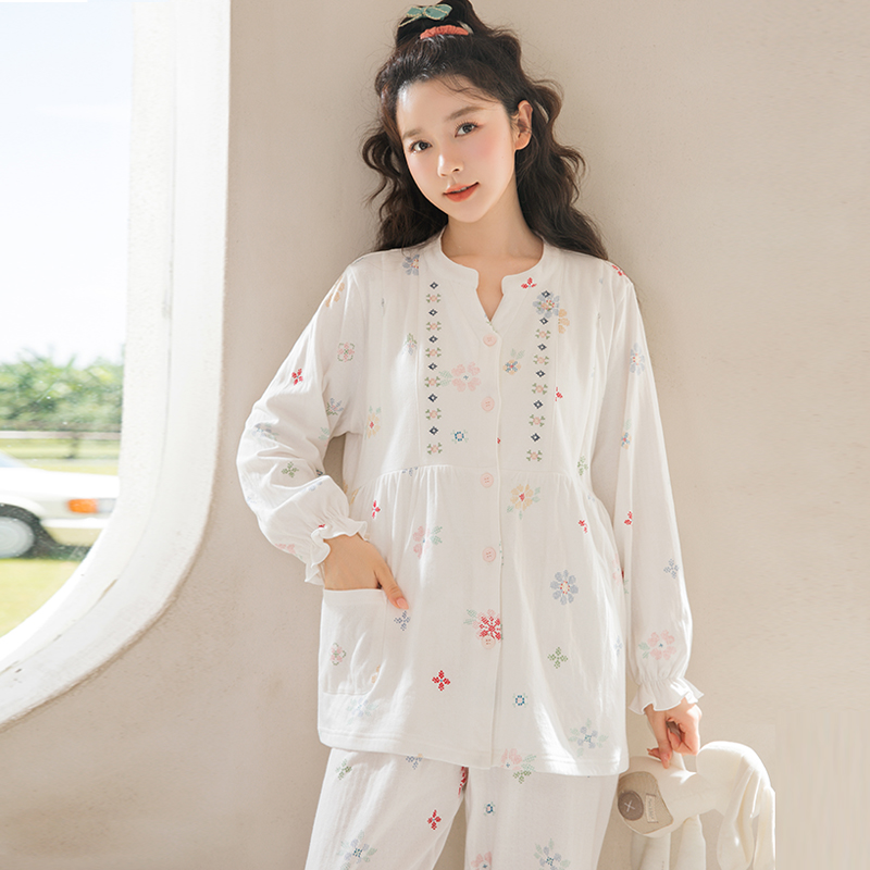 家时光月子服纯棉全棉吸汗春秋产后孕妇哺乳睡衣12月份产妇家居服
