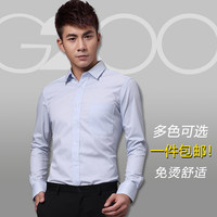 春男装长袖衬衫职业正装商务修身2000韩版收腰衬衣防皱免烫纯色