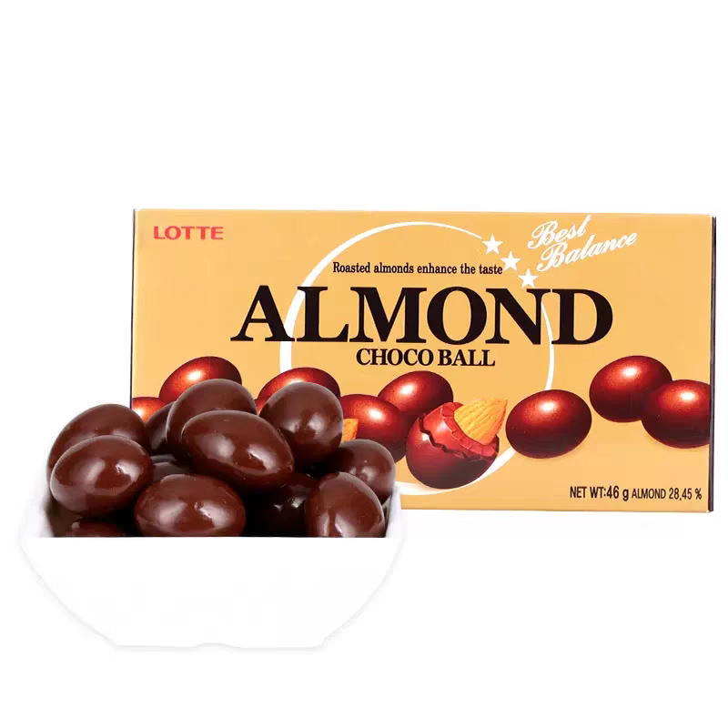 乐天扁桃仁巧克力豆 韩国进口零食果仁巧克力休闲坚果喜糖果46g