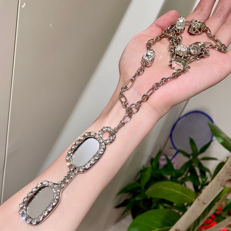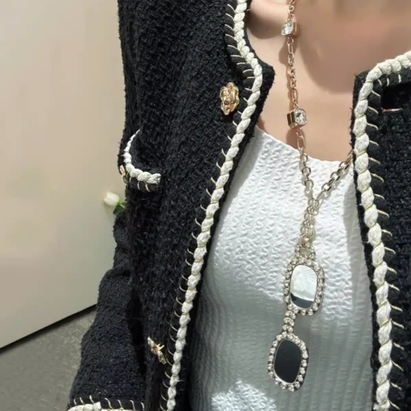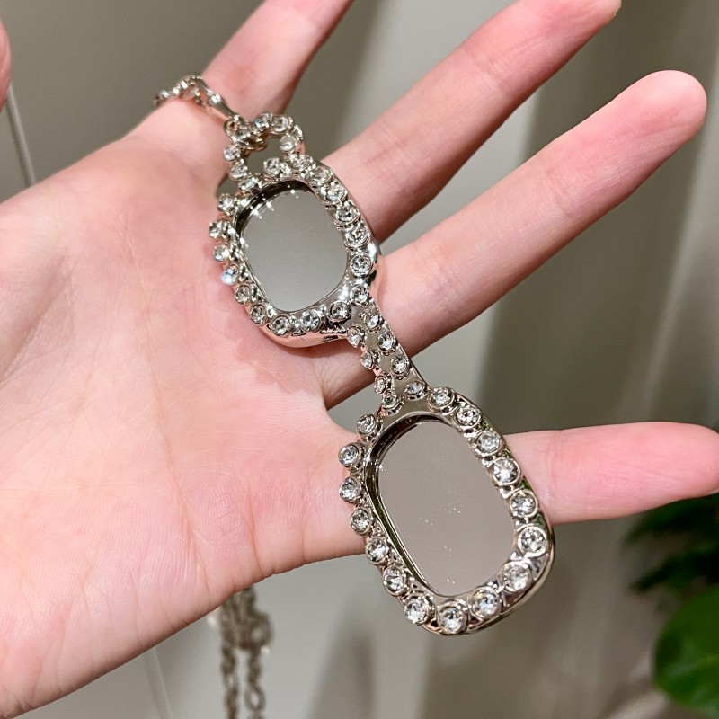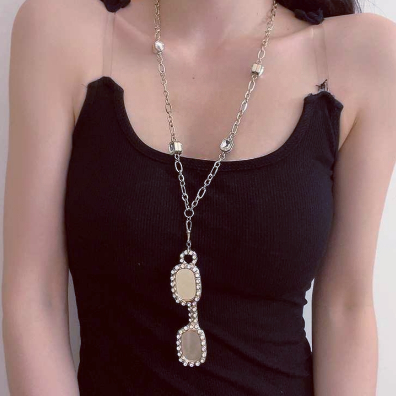 复古小香风水钻眼镜造型吊坠项链轻奢小众长款毛衣链2025新款配饰