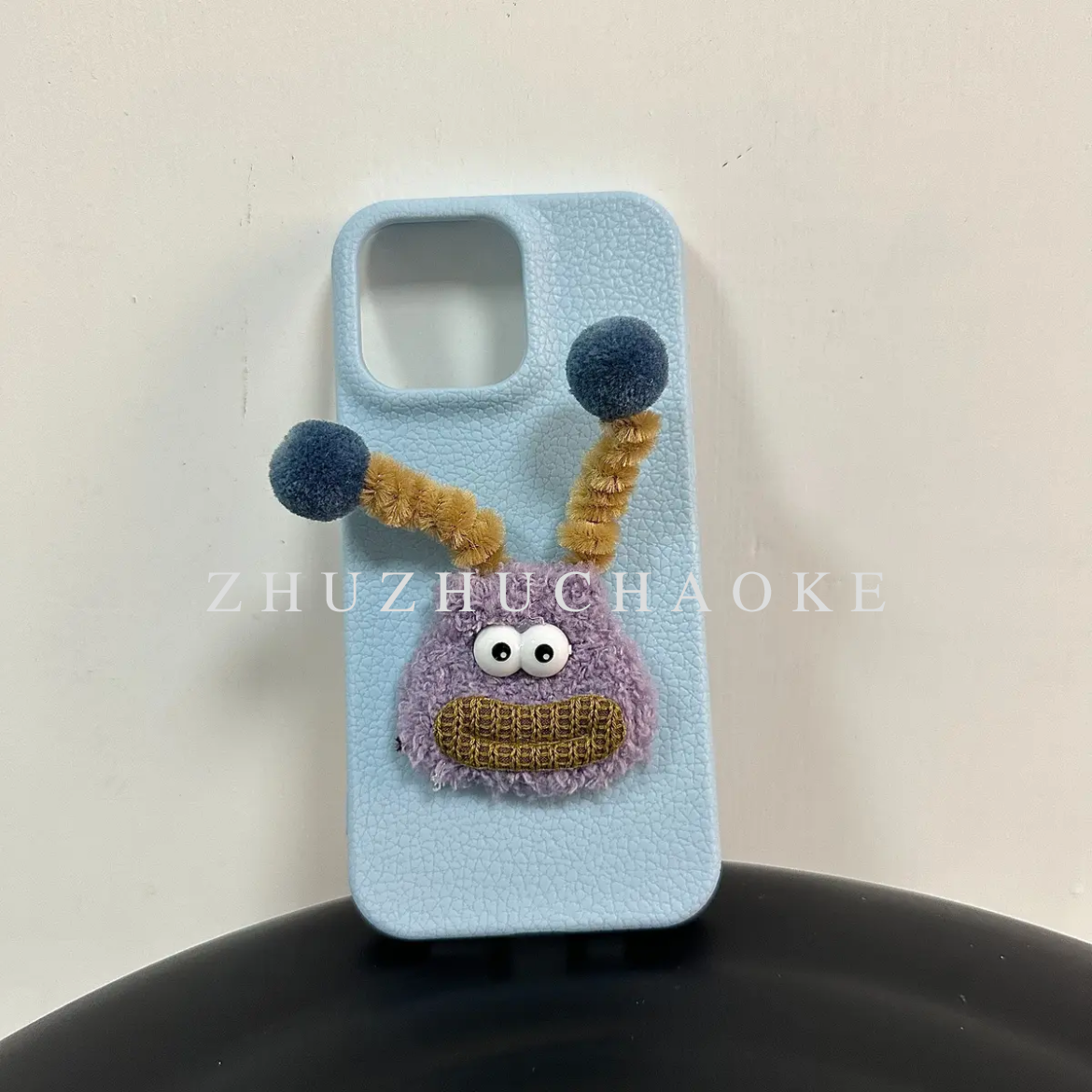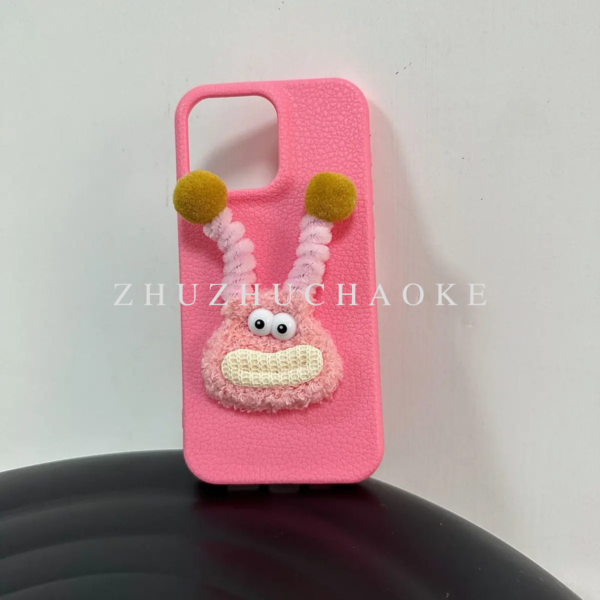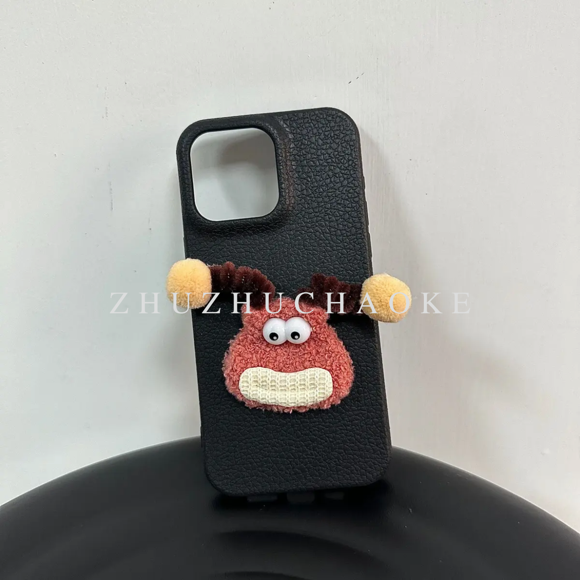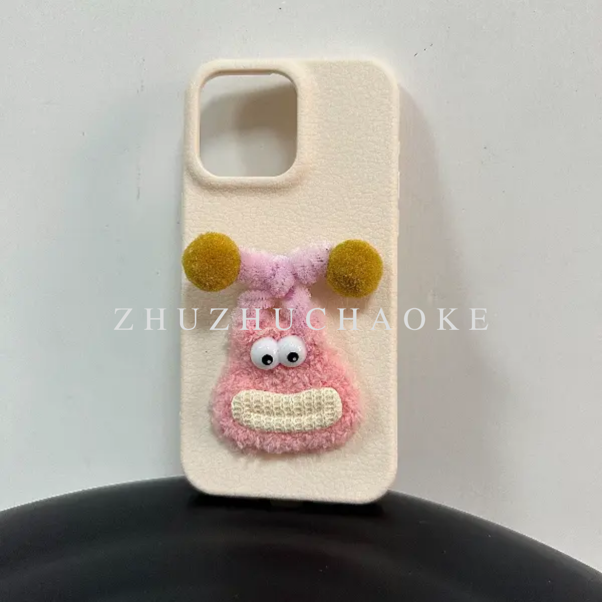 多巴胺毛绒丑萌小怪兽适用苹果17Air/16Promax手机壳荔枝皮纹iPhone1514/131211少女学生XR/XS软SE3代7/8Plus