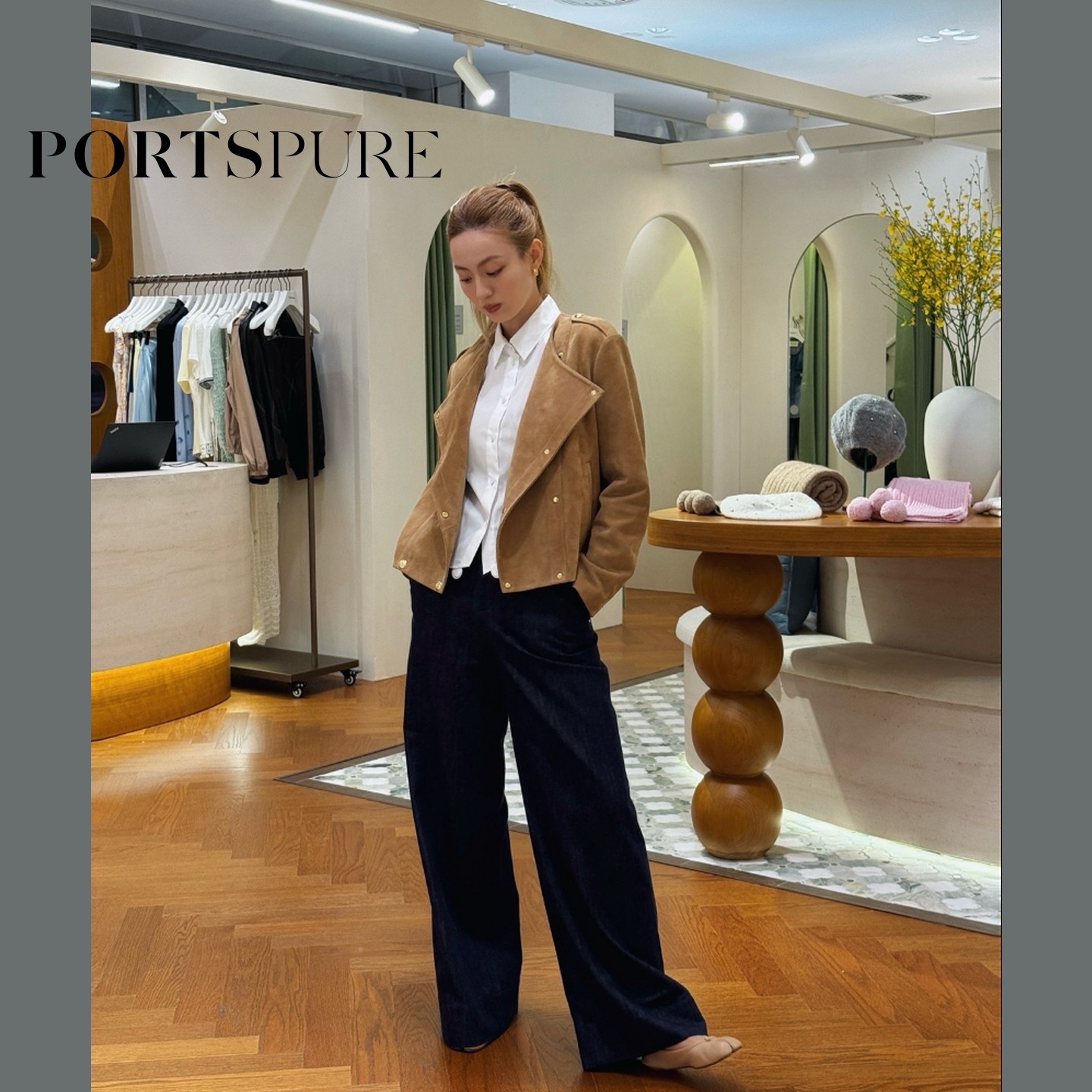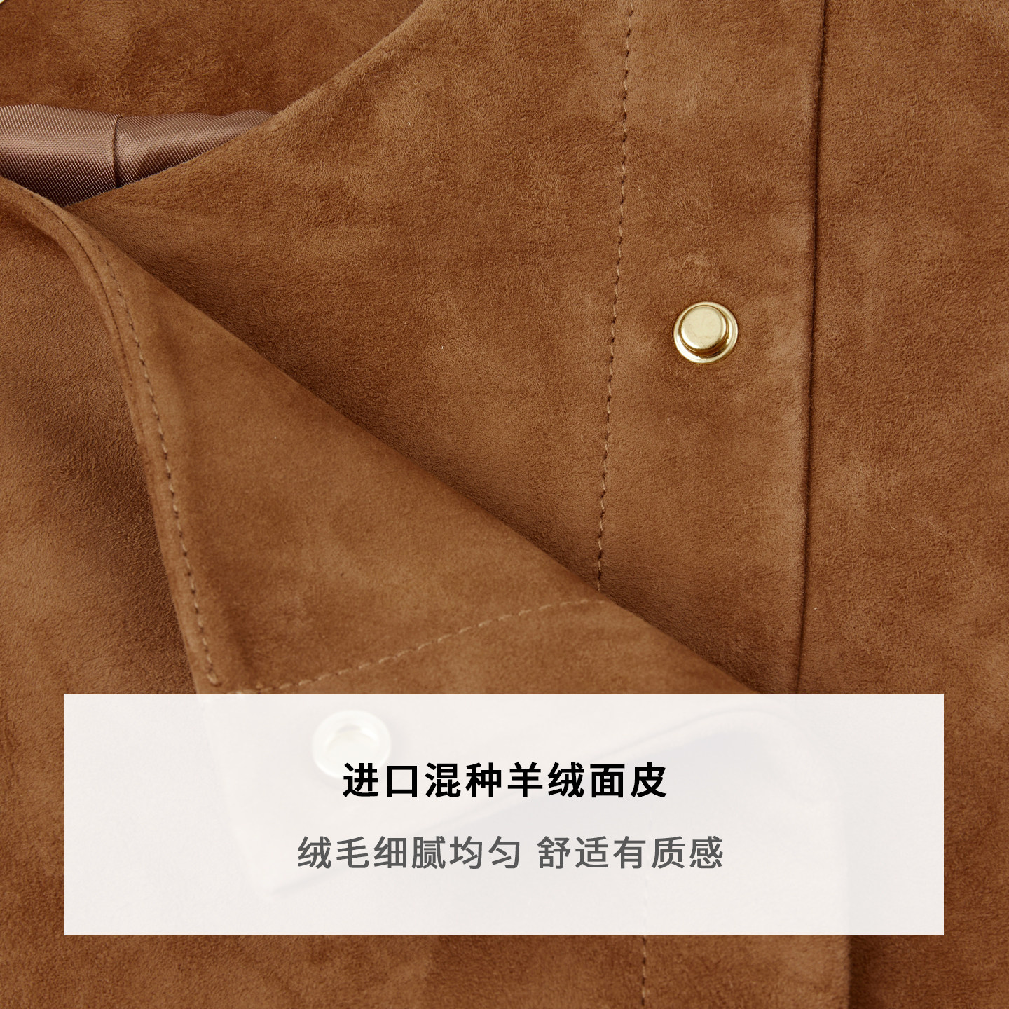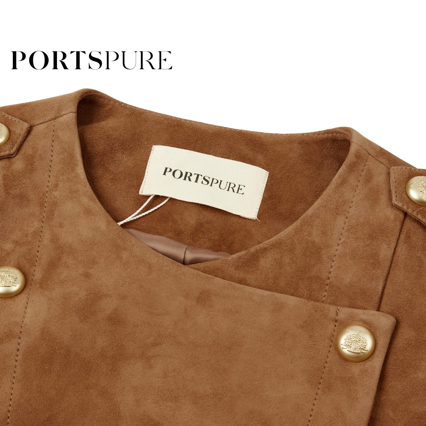 商场同款 宝姿PORTSPURE女装2025秋冬新品琥珀游牧焦糖真皮短外套