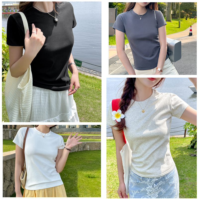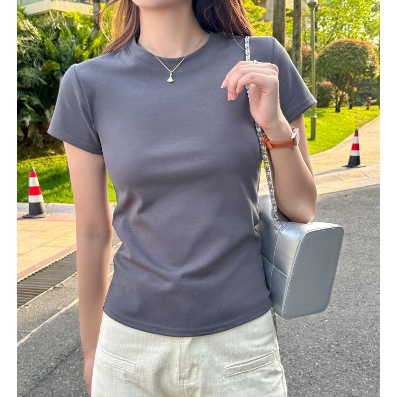 纯棉大码高品质正肩短袖宽松女式t恤春夏季修身显瘦T恤高级感